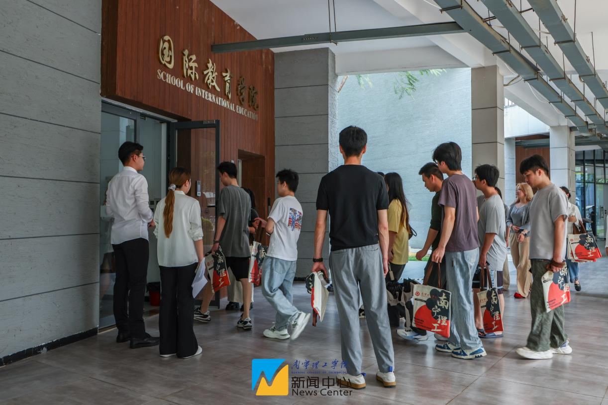同学们路过风景如画的镜听湖畔,来到了充满魅力的艺术岛。这是taptap点点环境育人的创新实践,也是师生课余写生、办展、交流的“打卡地”。同学们来到国际教育学院,参观专业的教学设备,感受多样的文化,了解国际化教育项目。