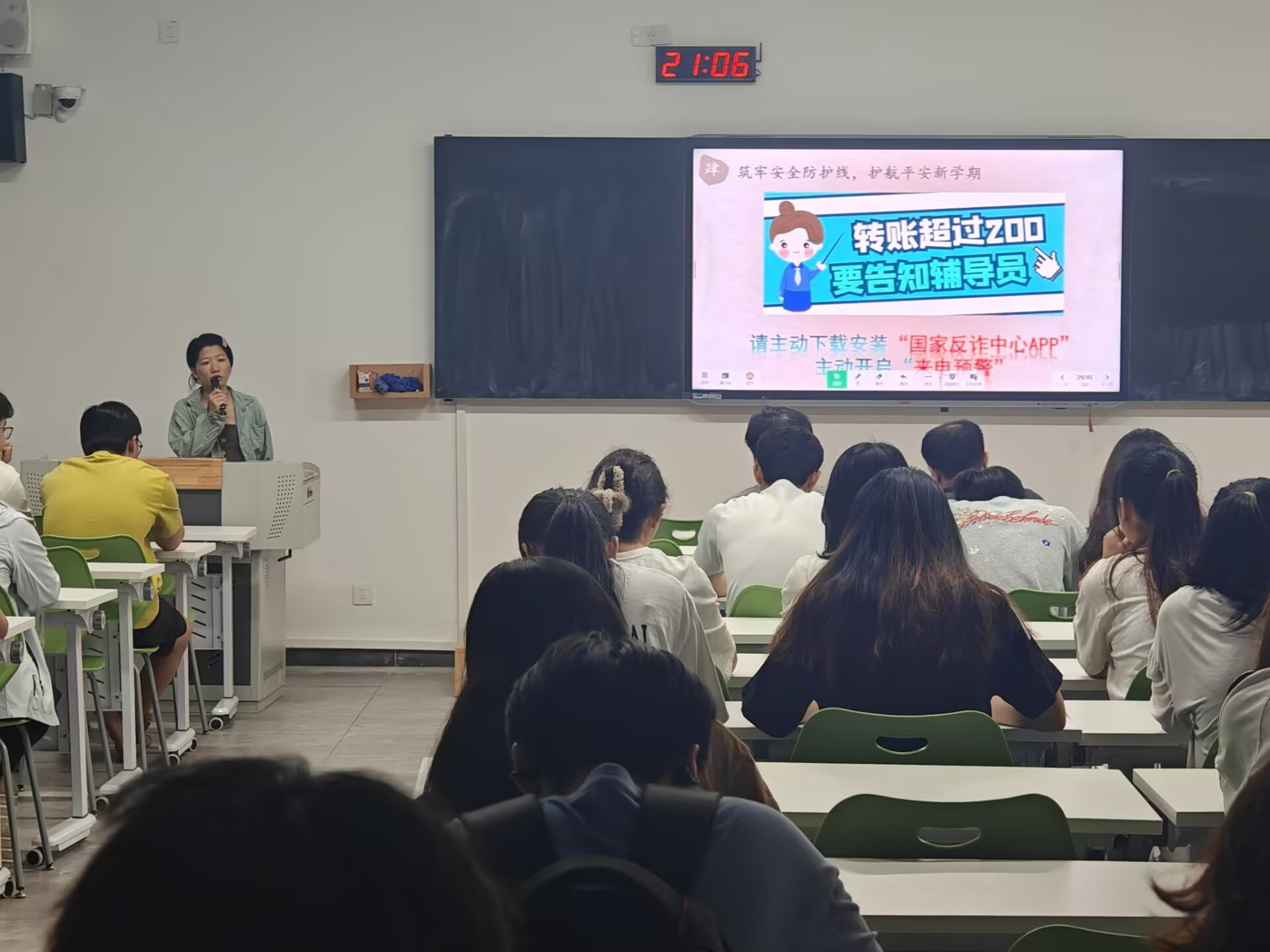 在学风建设方面,辅导员结合学院专业学习特点,提出四项具体要求:一是及时调整作息与心态,积极适应校园学习节奏;二是端正学习态度,严守课堂纪律与校规校纪;三是合理规划时间,积极参与实践与竞赛,做到学以致用;四是号召学生党员和学生骨干发挥模范带头作用,共同营造好学、乐学、善学的优良氛围,发挥学生党员、班干部的模范带头作用,组建 “学习互助小组”,营造 “好学、乐学、善学” 的优良班级学风。在安全教育环节,重点围绕网络安全、消防安全、交通安全和卫生安全四个内容,通过结合真实案例讲解,帮助学生树立牢固的安全意识。班会上,辅导员带领全体学生通过学习习近平总书记对青年的殷切寄语,引导学生科学制定新学期目标,鼓励大家以奋斗实干的姿态开启新的青春征程。