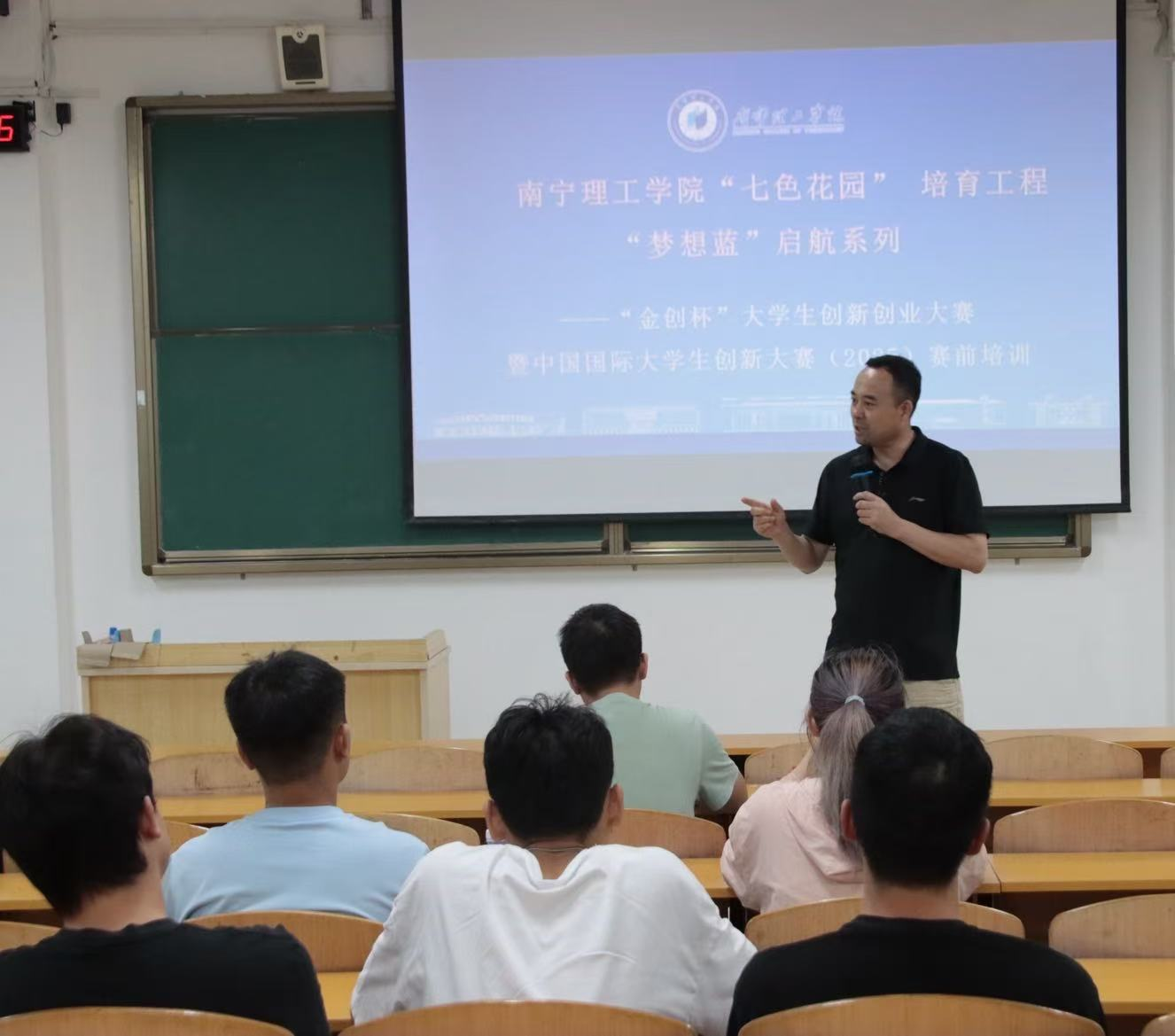 2025年4月学校桂林雁山和南宁东盟两校区“创新创业”大赛培训同步正式启动。启动仪式上,学校特邀资深赛事导师开展主题讲座,围绕“挑战杯”、“三创赛”、“互联网+”等赛事赛道,结合往届金奖案例,深入解析项目选题、团队构建、商业模式等核心内容,为同学们指明了备赛方向,激发了广泛的参与热情。