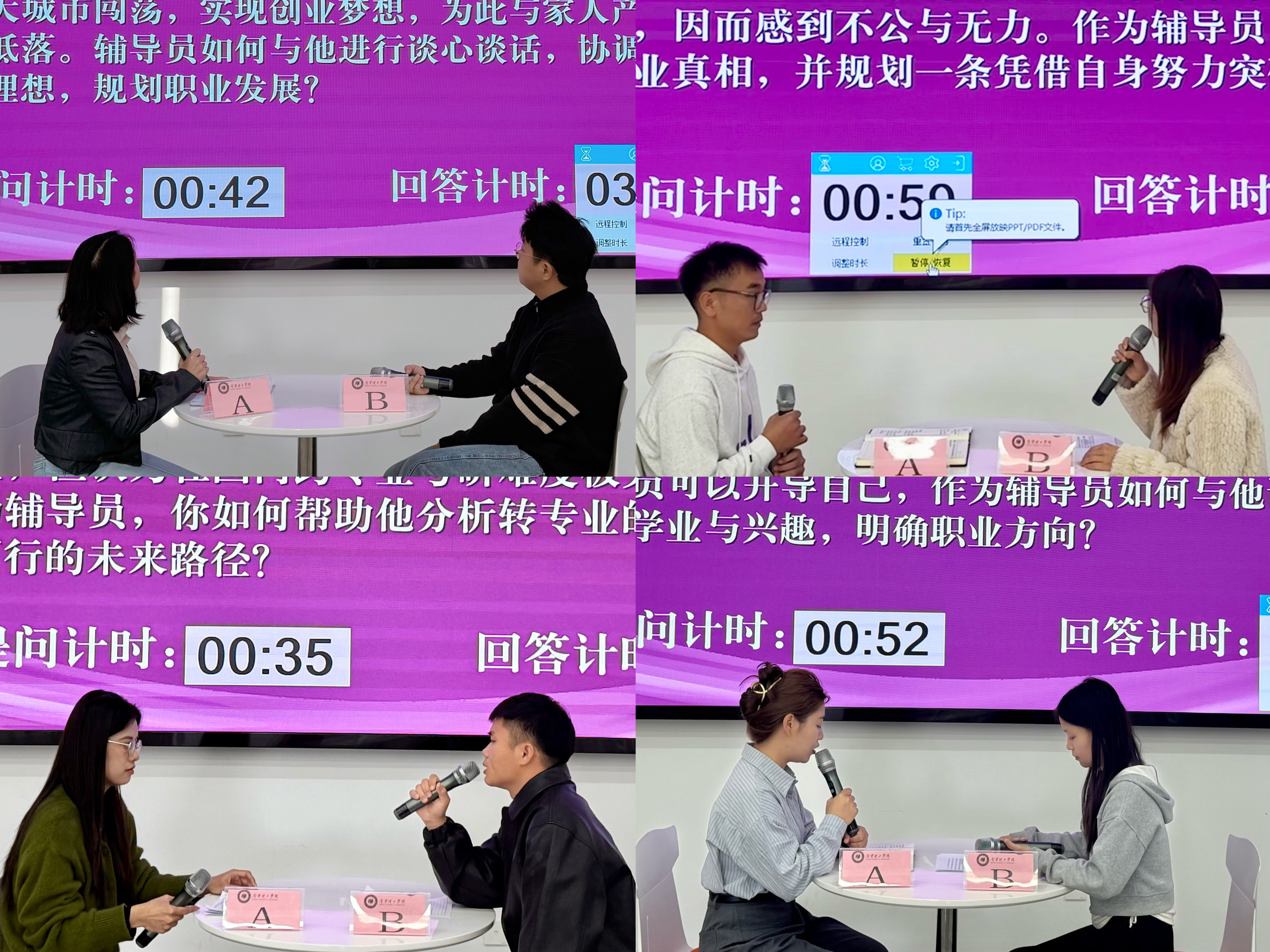案例研讨环节,精心选取了学生日常管理中具有代表性、复杂性的真实案例,涵盖了学业指导、人际交往、心理疏导、危机干预等多个方面。参赛辅导员需在规定时间内对案例进行深入分析,精准识别问题核心,并结合相关政策法规和育人理念提出切实可行的解决方案。
