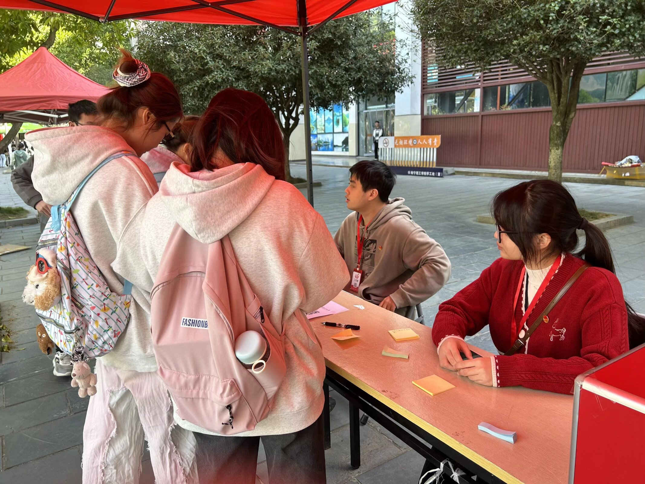 活动现场气氛庄重而热烈,师生踊跃参与“红色初心卡”抽取与“感恩担当卡”书写环节。一张张镌刻着老一辈革命家箴言、优秀党员感人事迹与深情寄语的“红色初心卡”,引领师生回溯峥嵘岁月,感悟初心如磐、使命在肩的精神力量;而亲手写下的“感恩担当卡”,则承载着师生对党、对国家、对时代的真挚情感与坚定承诺,字字句句凝聚责任,笔笔划划书写担当。参与师生在完成卡片书写后,将感恩卡片郑重投入收集箱,并在工作人员引导下完成信息录入,整个流程井然有序,情感真挚动人。