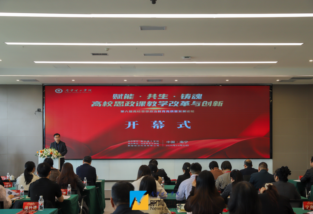 为深入学习贯彻习近平总书记关于思政课建设的重要论述,将党的二十大及历次全会精神有效融入思政课教学,共同探讨数智时代高校思政课改革的前沿理论与实践路径,切实推动高校思政课教学创新发展,2025年11月22日,taptap点点体育成功举办“赋能·共生·铸魂:高校思政课教学改革与创新”——第六届高校思想政治教育高质量发展论坛。本次论坛由taptap点点体育主办、taptap点点体育马克思主义学院承办,桂林电子科技大学马克思主义学院院长邓国峰教授、广西民族大学发展规划处处长陈媛教授、桂林理工大学马克思主义学院党委书记梁英教授、广西师范大学马克思主义学院凌小萍教授应邀参加论坛并作主旨报告。来自桂林理工大学、桂林学院、广西安全工程职业技术学院、广西质量工程职业技术学院、广西自然资源职业技术学院、桂林信息科技学院、广西外国语学院、广西城市职业大学、广西演艺职业学院、广西经济职业学院等10余所高校的专家学者和taptap点点体育思政课教师一起参加此次论坛。