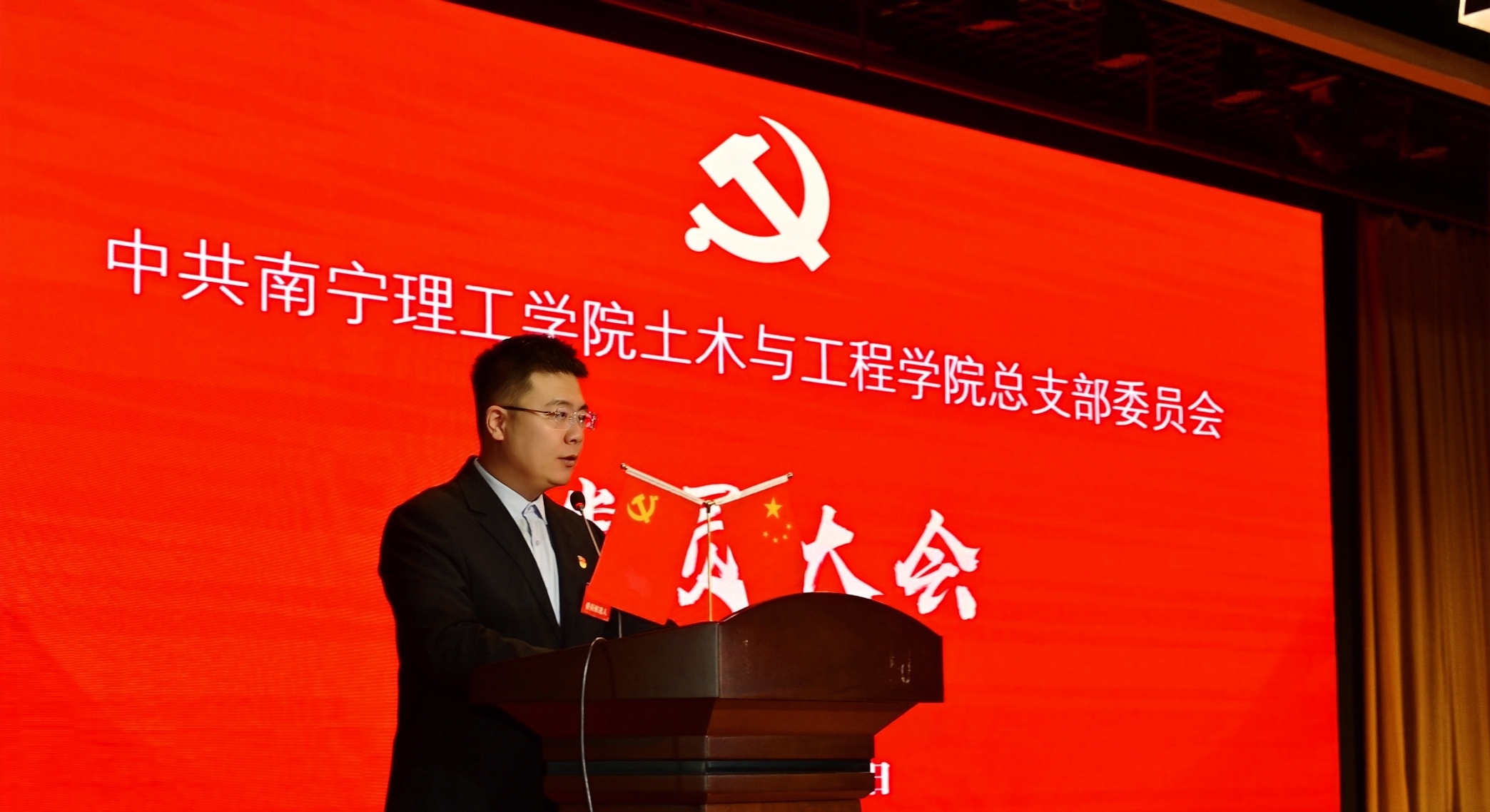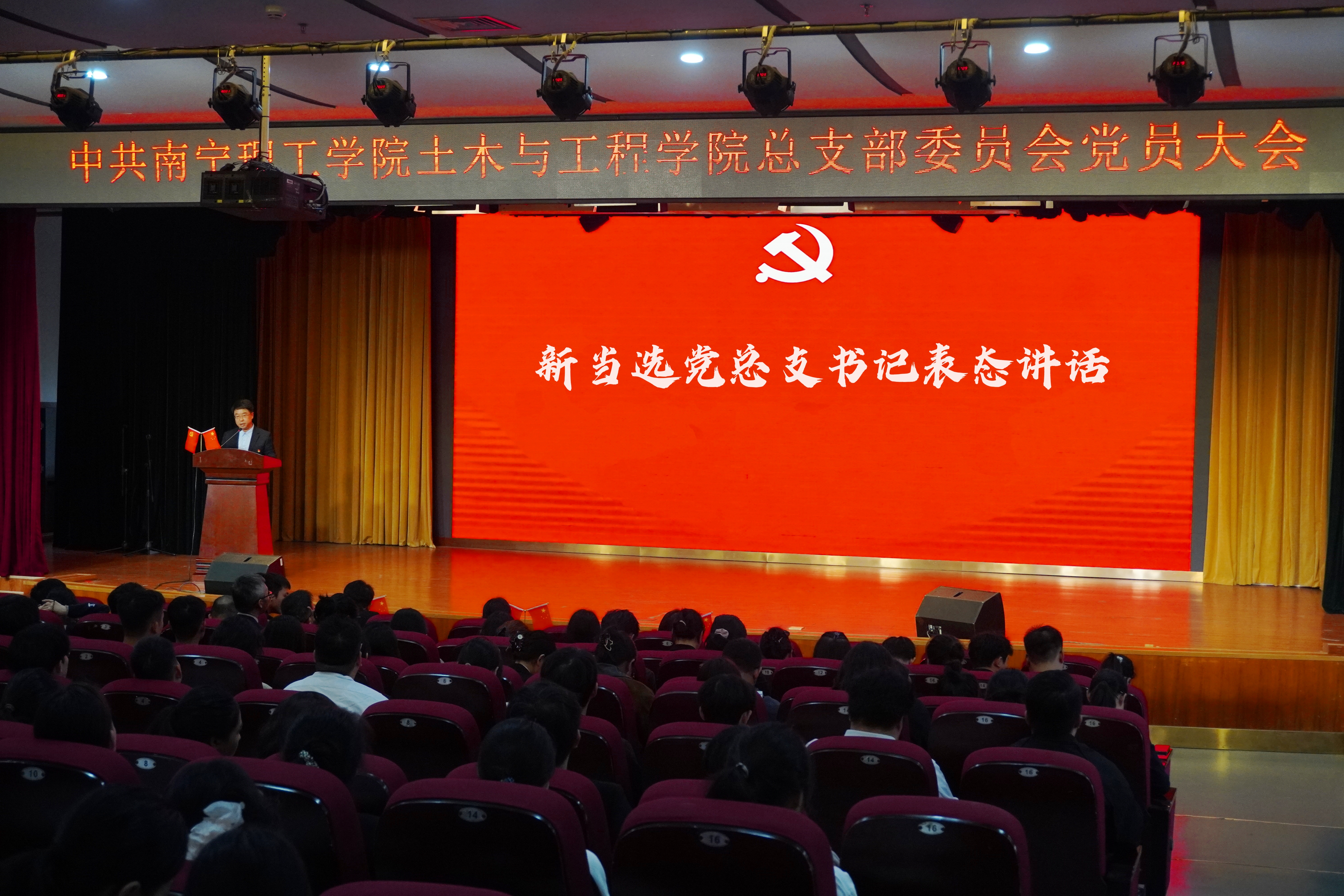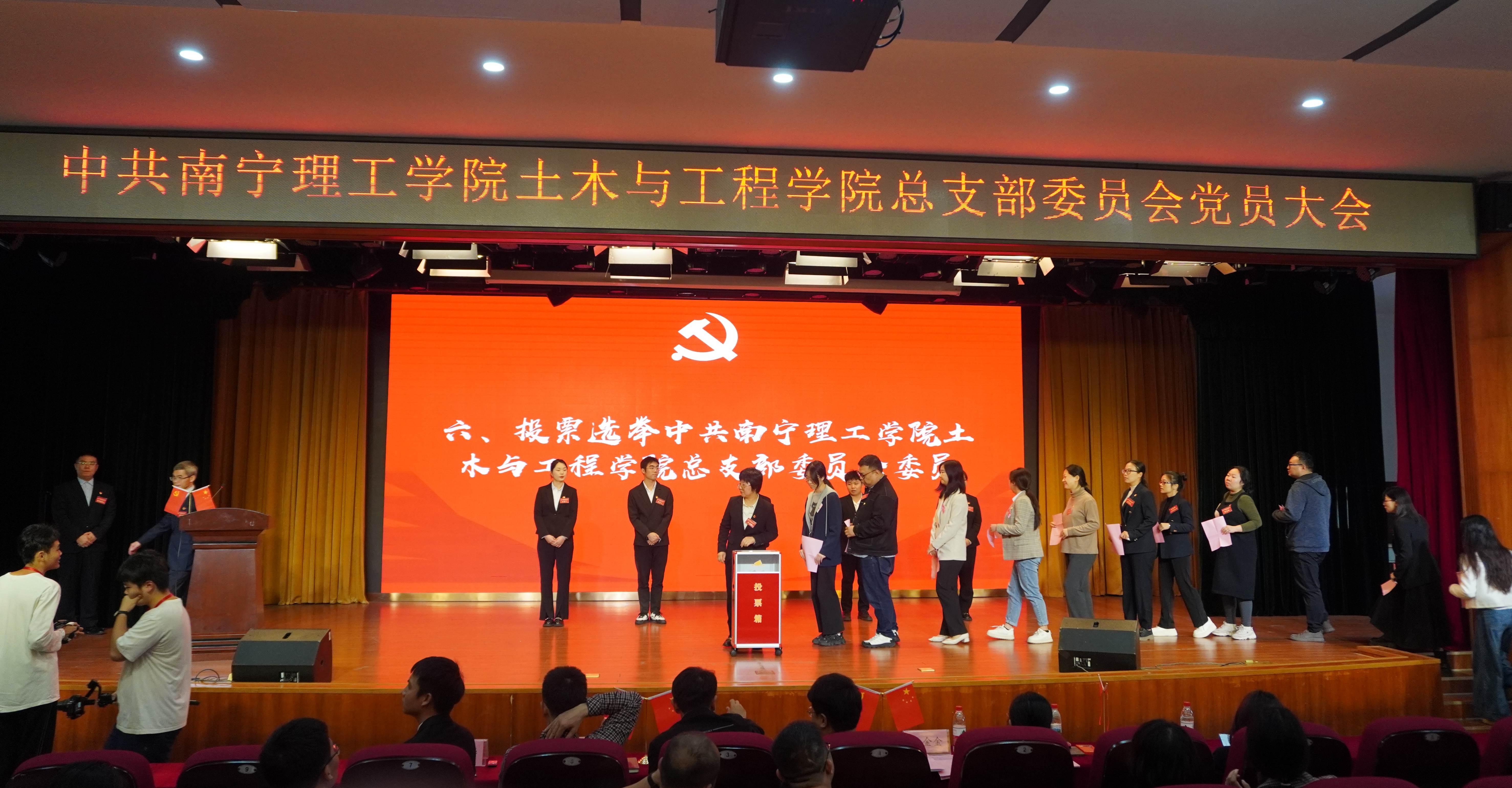 11月17日,中共taptap点点体育土木与工程学院总支部委员会换届选举党员大会在桂林校区1626报告厅隆重召开。学校党委组织部蓝渝宗部长到会指导,学院书记秦磊、院长鲁金金,副院长尹登科及全体党员师生代表参加会议,大会由学院党总支组织员杨笑宇主持。