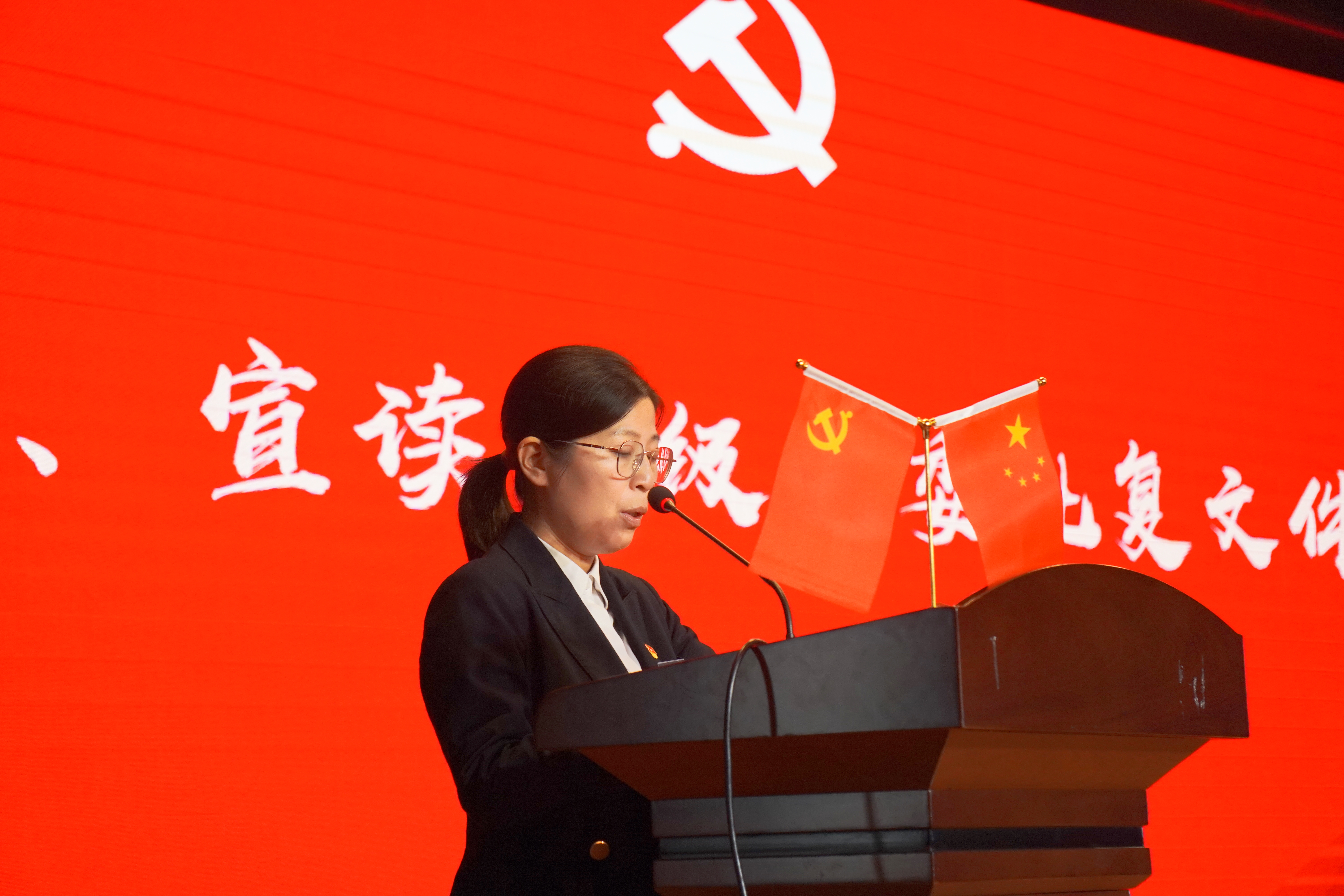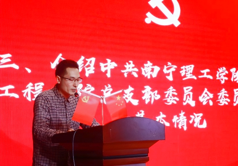 秦磊同志代表新一届党总支班子作表态发言。他表示,未来五年将重点推进四项工作:一是深化理论武装,健全常态化学习机制;二是夯实组织基础,推进党支部标准化规范化建设;三是强化队伍培养,优化党员结构激发活力;四是深化党业融合,打造“党建+学科”特色品牌,推动学院高质量发展。