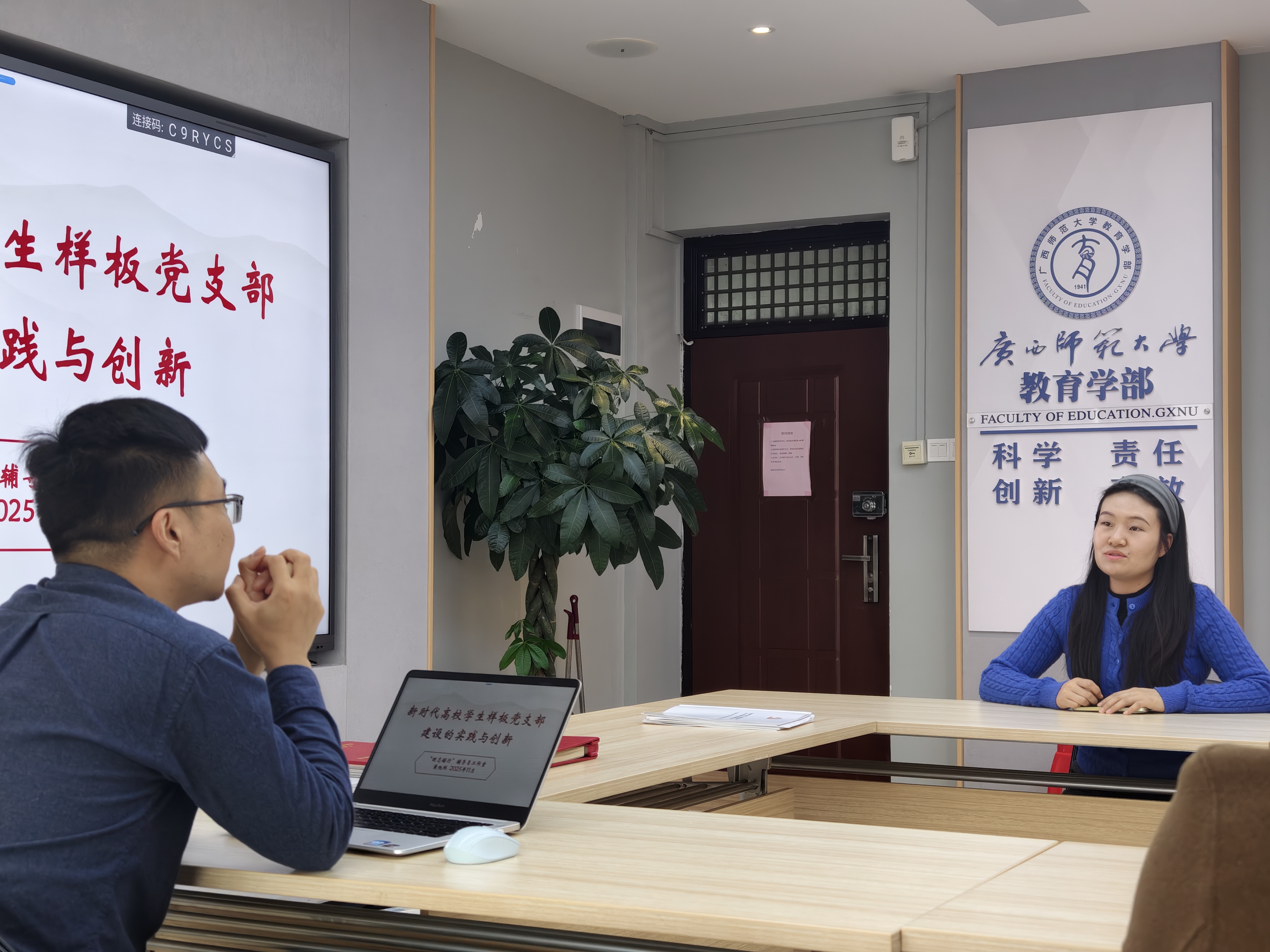 广西师范大学教育学部团委书记、学生党支部书记黄旭科接待了我院参访团,并详细介绍了该学部构建的“五融合”党建与业务互融互促模式,这一模式近日获人民网专题报道,成为高校党建与业务深度融合的典范。
