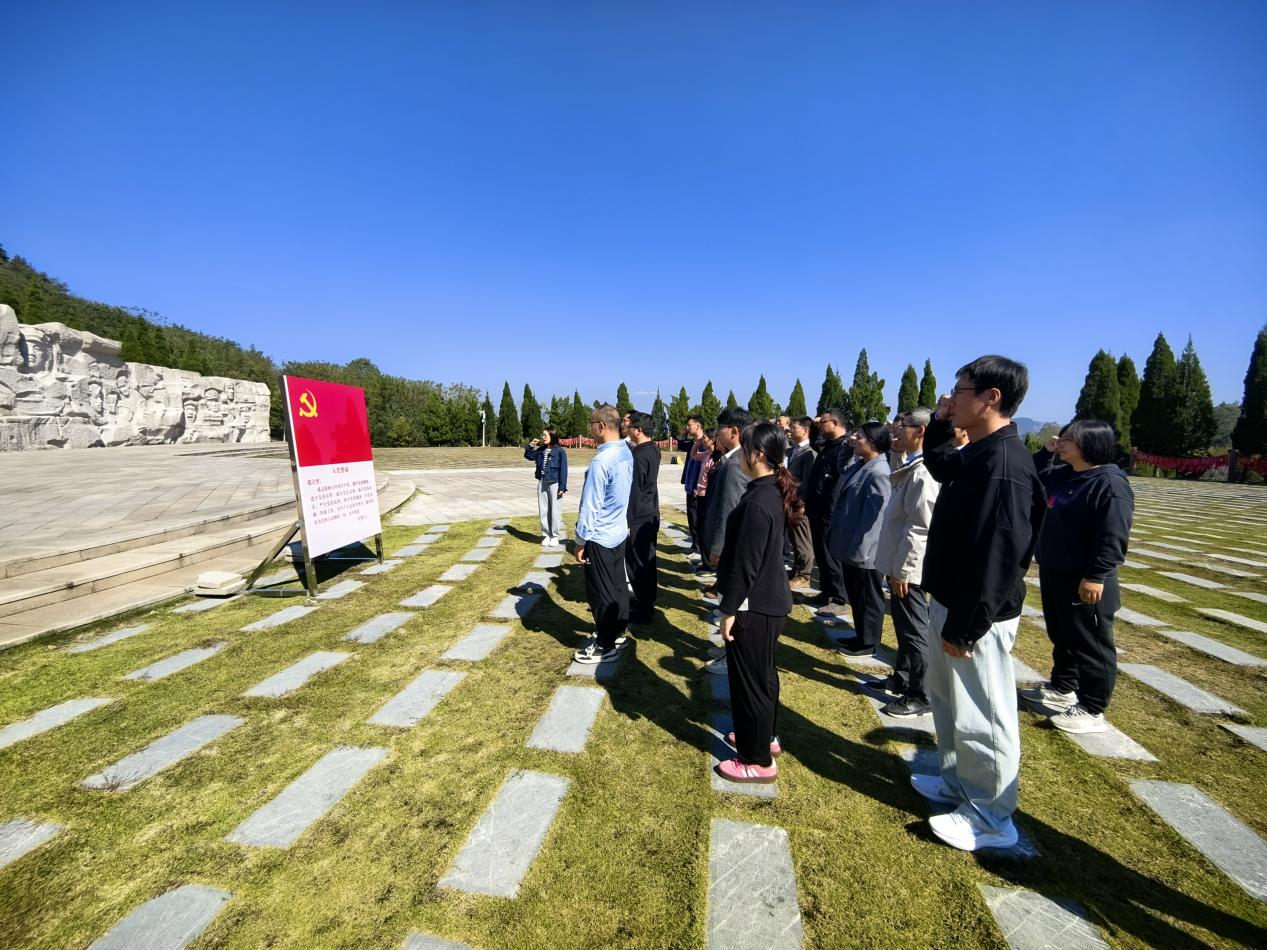 最后,全体党员教师步行前往纪念林,并认真地听纪念林讲解员介绍纪念林及烈士事迹。一草一木一忠魂,一山一石一丰碑。这片土地的每一寸,都曾见证过鲜血与牺牲,书写着对党忠诚、可歌可泣的壮丽诗篇。红军烈士以生命践行信仰,他们的血肉之躯,化作了二万五千里长征路上最坚实的路基。