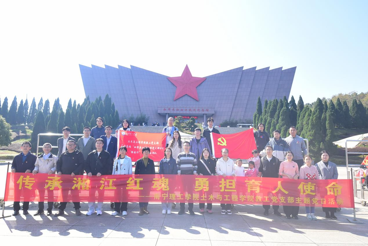 为强化 “强国行” 团队的凝聚力与战斗力,筑牢党性根基,强化党员教师的责任担当,激励全体党员教师赓续红色血脉、矢志立德树人,将革命先辈的奋斗精神融入教育教学与学科建设,2025年11月15日,土木与工程学院教工党支部组织全体党员教师,前往位于桂林全州的红军长征湘江战役纪念馆,成功举办了“传承湘江红魂 勇担育人使命”主题党日活动。