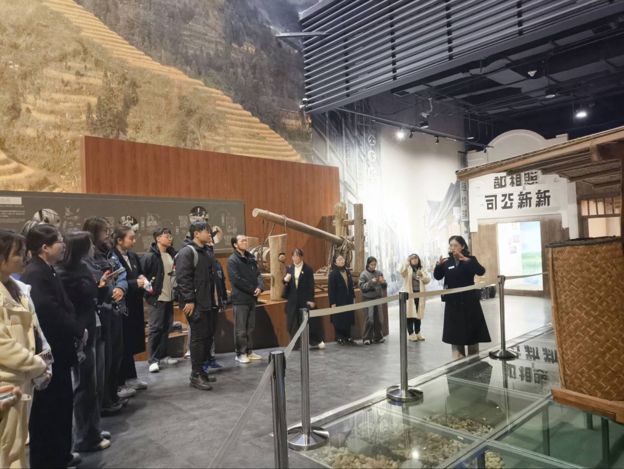 活动在桂林博物馆“画里人家——桂林民俗文化展厅”开展,旨在帮助党员了解桂林传统民族文化,涵盖自然环境、特色建筑、民俗风情与传统饮食。讲解员以展厅内的本地水运船和1:1复刻的繁华城厢街景为切入点,介绍桂林近代城市风貌、起居方式及人文历史的演变;继而讲述船夫劳作和随船生活的场景、街市桂林米粉的售卖形式(店铺定点或肩挑沿街)以及本地非物质文化遗产展示。随后,讲解员聚焦侗族、瑶族、壮族的民族传统服饰、传统农作工具及手工作坊器械,生动呈现了当地民族的交融与繁荣,为了解中华优秀传统文化的多样性提供了鲜活样本。