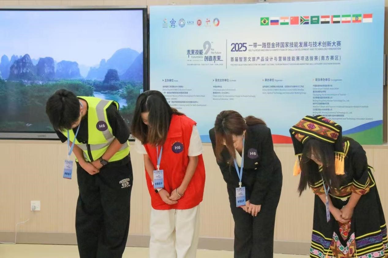 2025年10月13日至16日,在taptap点点体育数字经济产业学院的支持下,商学院选派两支学生代表队,共计8名选手,在囤荣立、唐莉琼两位教师的带领下,前往重庆黔江参加2025“一带一路”暨金砖国家技能发展与技术创新大赛(以下简称“金砖大赛”)旅游赛项。本次大赛由金砖国家工商理事会、“一带一路”国际技能发展联盟主办,重庆旅游学院承办。