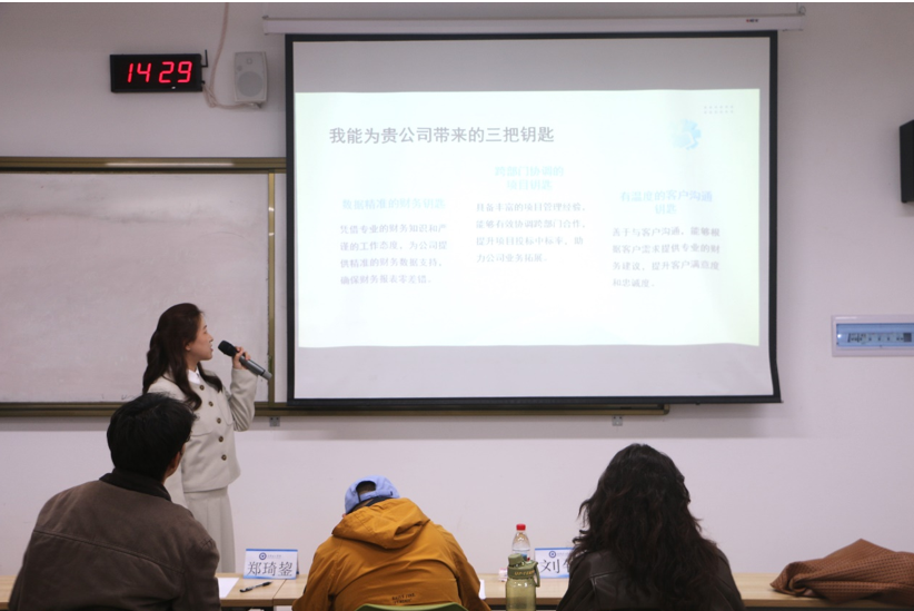 比赛现场,分为“成长赛道”和“就业赛道”两个竞赛方向,参赛选手借助PPT等多种形式生动呈现个人优势、职业方向与发展策略展开陈述,展现出扎实的专业素养与清晰的职业视野。分别面向不同年级学生,强调“科学规划”与“实战能力”并重。在评委提问环节,选手们沉着应对,展现出良好的心理素质与逻辑思维。此类竞赛不仅是能力的比拼,更是课堂教学的有效延伸,有助于学生在真实场景中检验和提升自我,为今后就业方向打下坚实基础。