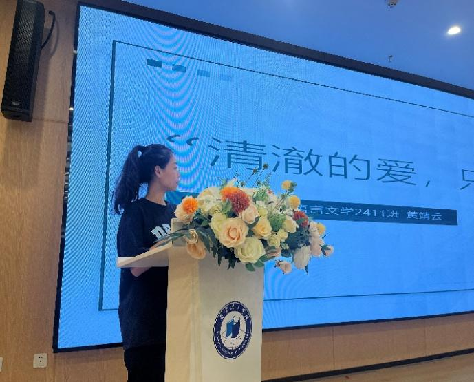随后,退役大学生士兵代表分享了他们的军旅经历。社体2401班高叶万讲述了自己在部队中从青涩到坚毅的蜕变历程,以及高强度军事训练中的汗水与坚持,以及团队协作执行任务时的热血与感动。汉语言文学2411班黄靖云则分享了部队生活对自身意志品质的磨炼,从初入军营的不适应到逐渐融入以及前往黎巴嫩维和的突破性成长,她表示部队找到自身价值,让自己学会了担当与奉献。