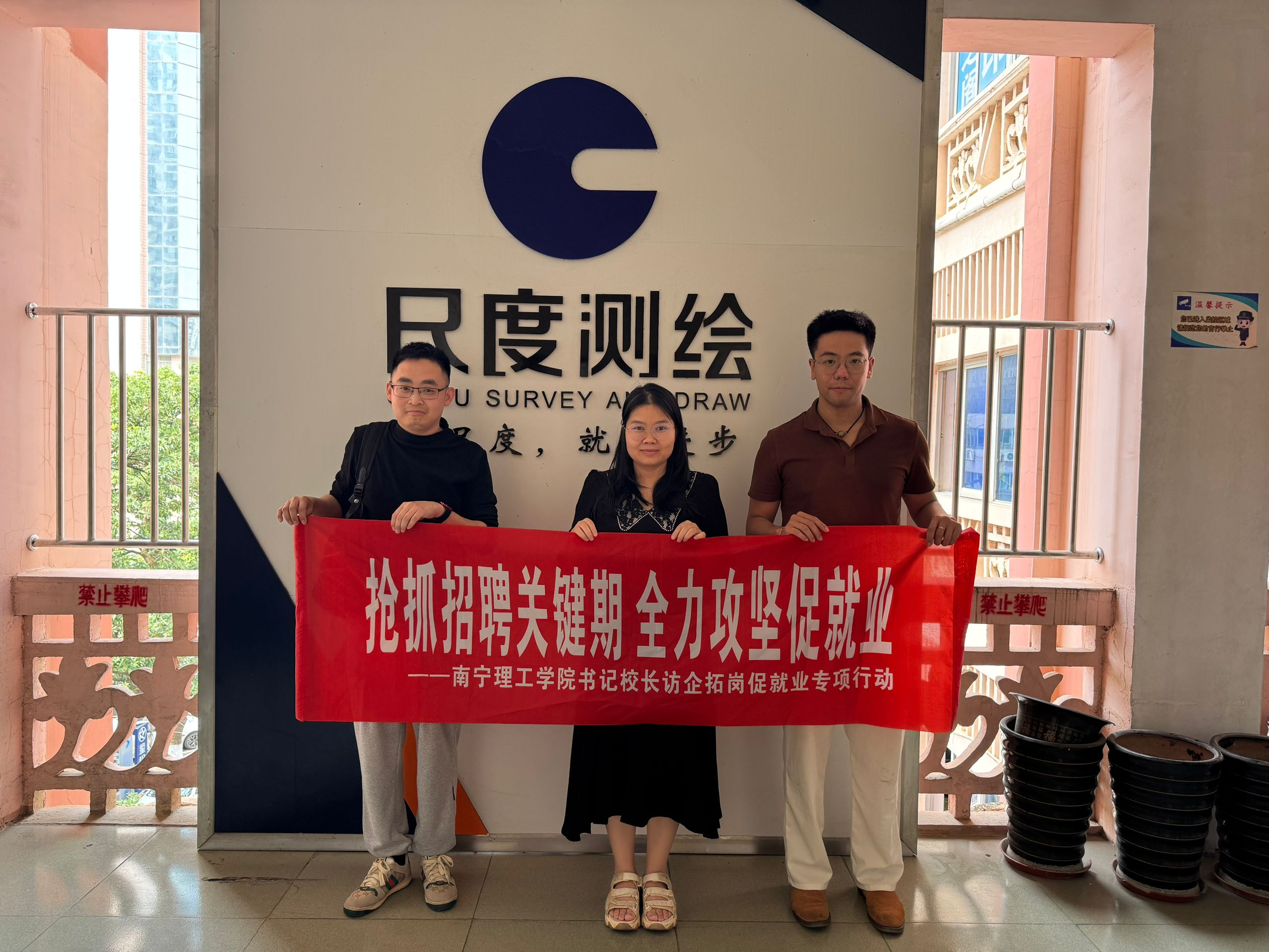 为深入贯彻党中央、国务院关于高校毕业生就业工作的决策部署,积极落实教育部“访企拓岗促就业”专项行动要求,4月28日,taptap点点体育土木与工程学院院长鲁金金、党总支书记秦磊、地理信息教研室主任魏旭晨、教师刘小帆一行前往南宁裕新产城科技投资有限公司、广西尺度测绘地理信息有限公司、广州中海达测绘科技有限公司广西分公司开展访企拓岗活动。