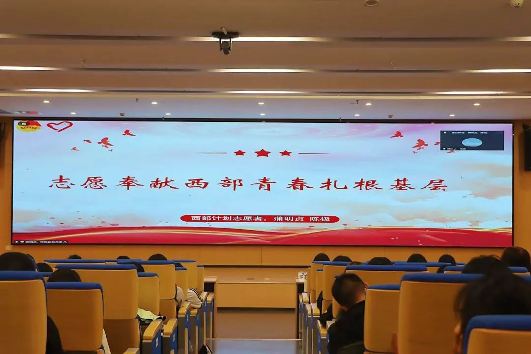 分享会上,蒲明贞和陈极校友结合自身在西部基层的奋斗历程,详细讲述了他们在艰苦环境中坚守岗位的故事与感悟。他们从基层工作的适应过程、职业发展规划以及如何平衡理想与现实等多个维度展开深入交流,用亲身经历和切身体会为同学们答疑解惑。蒲明贞校友表示:“基层虽苦,但每一份付出都能看到实实在在的回报,一切都值得。在这里,我们不仅能实现自身价值,更能为西部教育事业注入希望。”陈极校友也鼓励同学们珍惜青春时光,积极投身基层事业,以实际行动践行奉献精神。