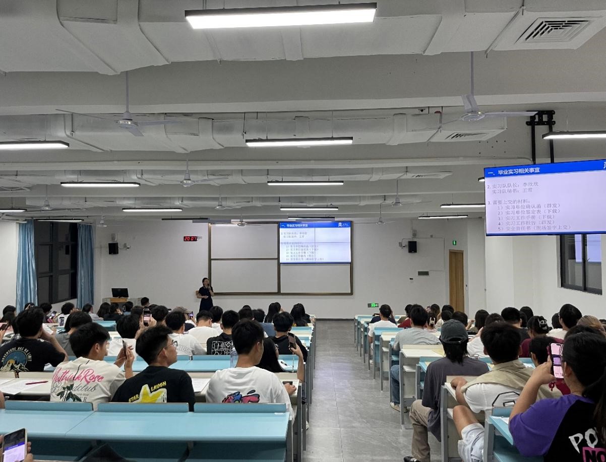 会议伊始,李老师围绕毕业实习重点展开说明。根据学院安排,全体学生需于大四学年完成实习,并提交实习日志、实习报告及企业鉴定表等材料。会议要求,实习单位须与专业方向匹配,材料内容必须真实规范,所有文件需按要求提交。