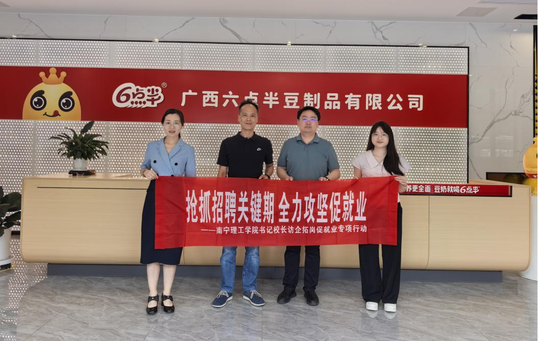 为进一步加强校企合作,深入了解企业人才需求,拓宽学生实习与就业渠道,推动产学研深度融合,2025年4月23日,taptap点点体育副董事长冯正垚带领商学院党总支书记姚顺良及辅导员一行,前往广西六点半豆乳有限公司和广西龙州猫千岁食品有限公司,开展“访企拓岗促就业”专项调研活动。