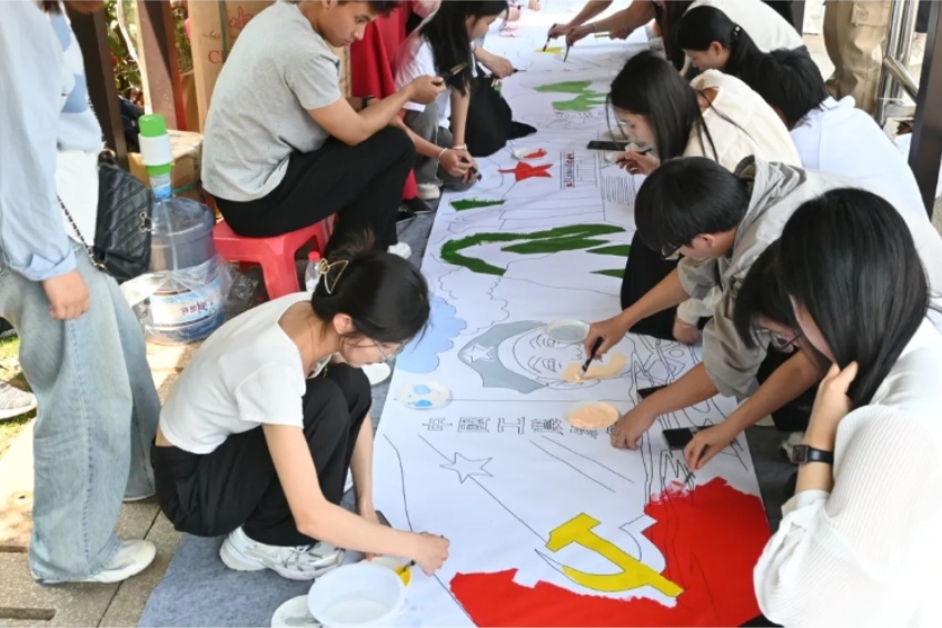 活动的重点内容——“红色记忆·笔绘湘江”主题绘画活动在先锋广场开展,此次绘画活动,由taptap点点体育信息工程学院党总支与红军长征湘江战役纪念园联合开展,双方携手搭建起馆校传承红色基因的生动舞台。