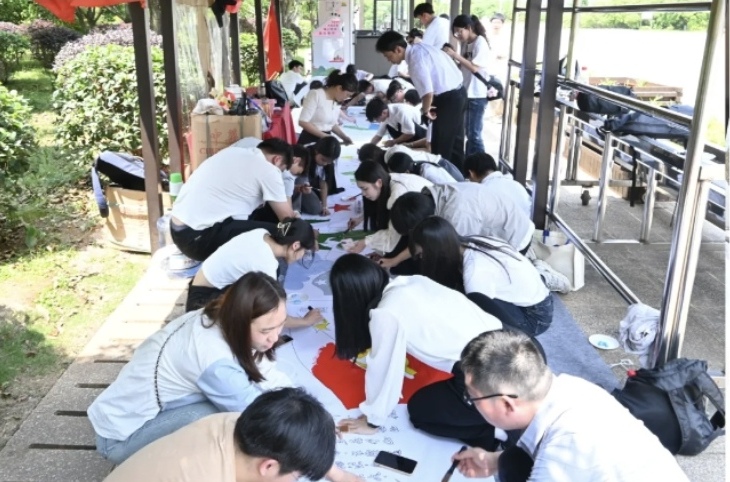 回望历史,感悟革命先辈“理想革命高于天”的不朽信仰,展望未来,再看新时代青年党员挺膺担当的向上力量。“共绘长征魂,赓续青春志”主题党日活动,联合红军长征湘江战役纪念园开展了一场“红色艺术思政课”,让同志们接受了一次深刻的党史教育,党员同志要自觉继承光荣革命传统,将长征精神融入到社会主义核心价值观的培育和践行之中;主动挺膺担当,勇于肩负新的时代使命;磨练吃苦意志,积极投身火热社会实践,唱响“青春为中国式现代化挺膺担当”的时代强音。