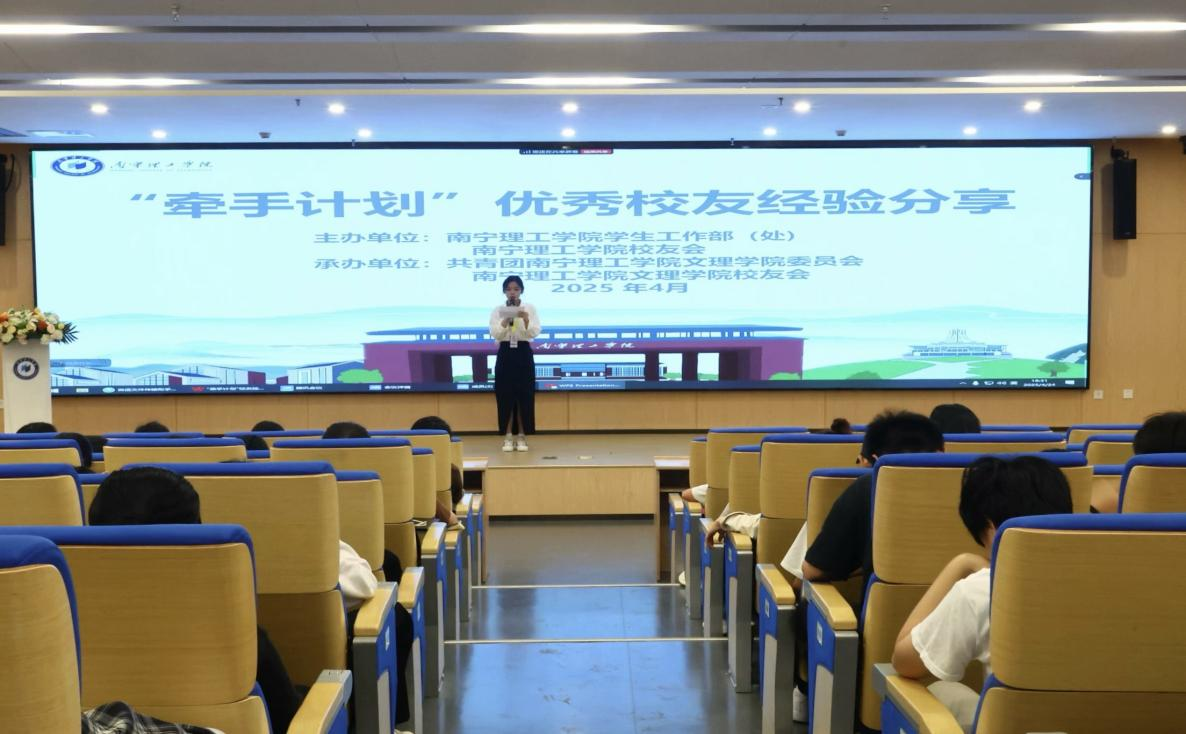 为进一步发挥优秀校友力量,搭建学校优秀校友与在校学生互动交流平台,文理学院开展第三十九讲“牵手计划”校友导师经验分享会,4月24日晚上在南宁校区图书馆119报告厅开讲,特邀2024届优秀毕业生方佳尹担任本次主讲人。