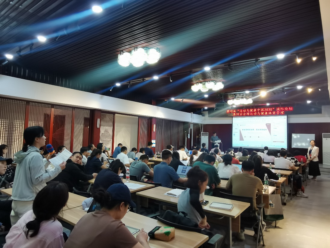 图为邓雨婷老师在论坛分会场与北京体育大学运动科学领域专家进行现场交流