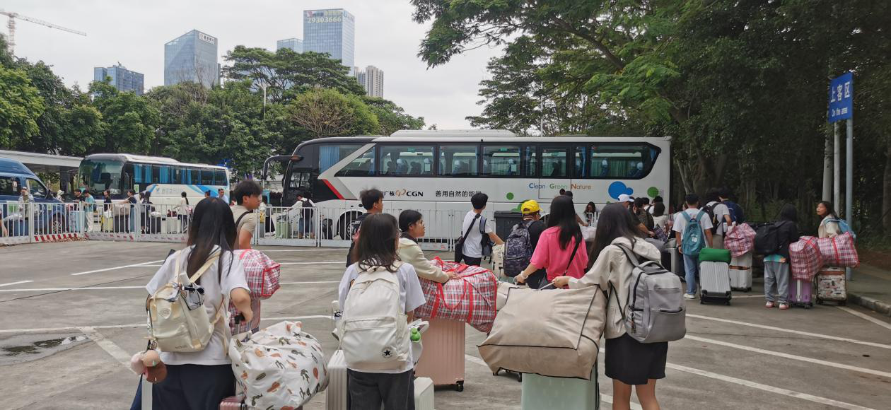 (图 学生乘车前往深圳华南电商城宿舍)