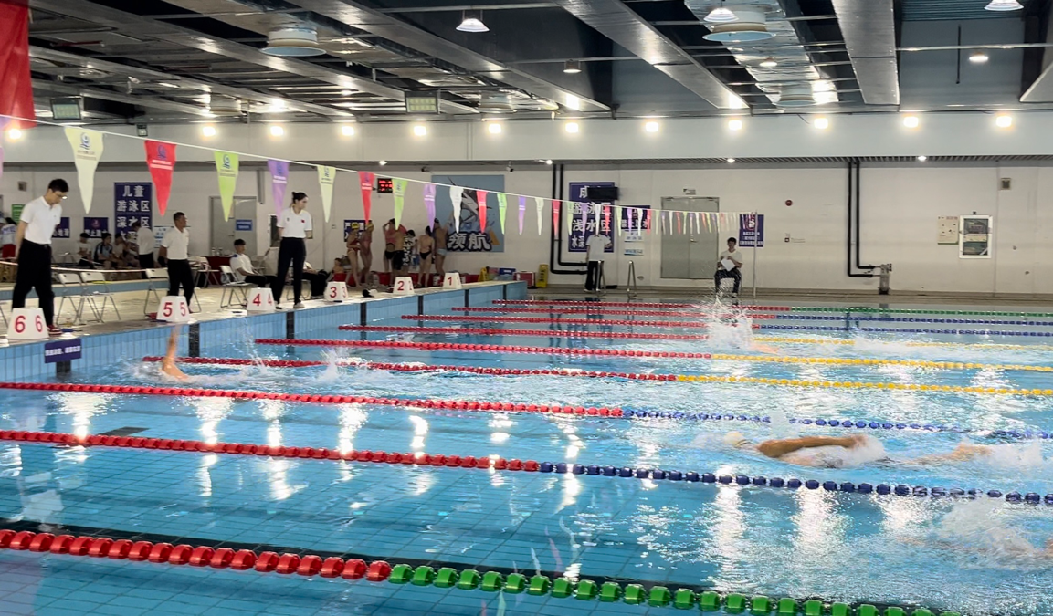 比赛涵盖了自由泳、仰泳、蛙泳等43个比赛项目,吸引了来自各区各级学校的30支代表队、近200名运动员,赛事根据年龄分为不同组别,确保每位选手都能在公平、公正的环境中展开角逐。杨景杰同学在文理学院体育教研室李梅主任、甘狄辉主任和马贵奔老师的带领下,如同一条灵动的“飞鱼”破水而出,矫健的身姿在水中快速穿梭,每一次转身,每一次划水都充满了力量与技巧。尤其是在大学体育专业组100米自由泳比赛中,他的泳姿流畅自然,并凭借优异的后程能力率先触壁,以1分04秒斩获冠军。