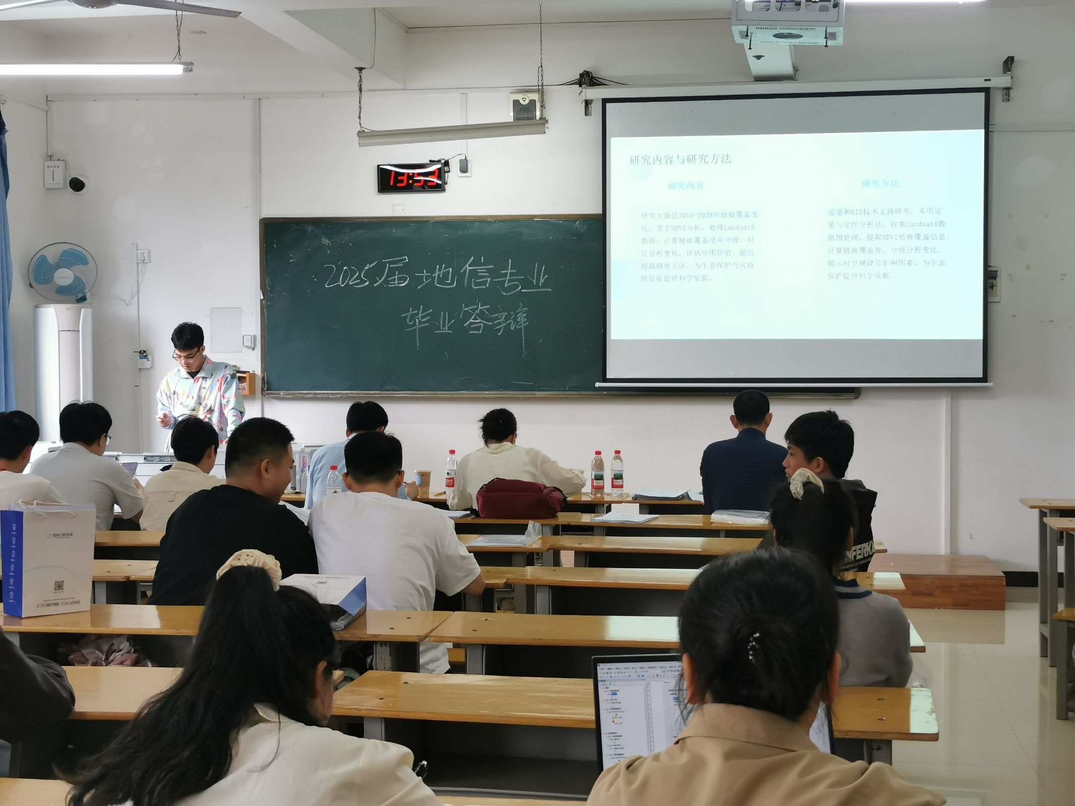答辩现场,来自地理信息科学专业的学子们展示了多项创新性研究。其中,撰写无人机应用方向的同学,通过多源遥感数据融合,有效提升了地理信息数据采集效率;土地利用变化相关论文则基于多源时空数据,为国土空间规划提供了科学决策支持;敏感度分析方向的论文聚焦地质灾害预警,通过建立敏感性评价体系,优化了边坡稳定性预测模型。评审专家从技术深度、应用价值、方法创新等角度提问,并针对成果转化路径提出建议。企业代表结合实际案例,指导学生如何将学术模型转化为可落地的工程解决方案。