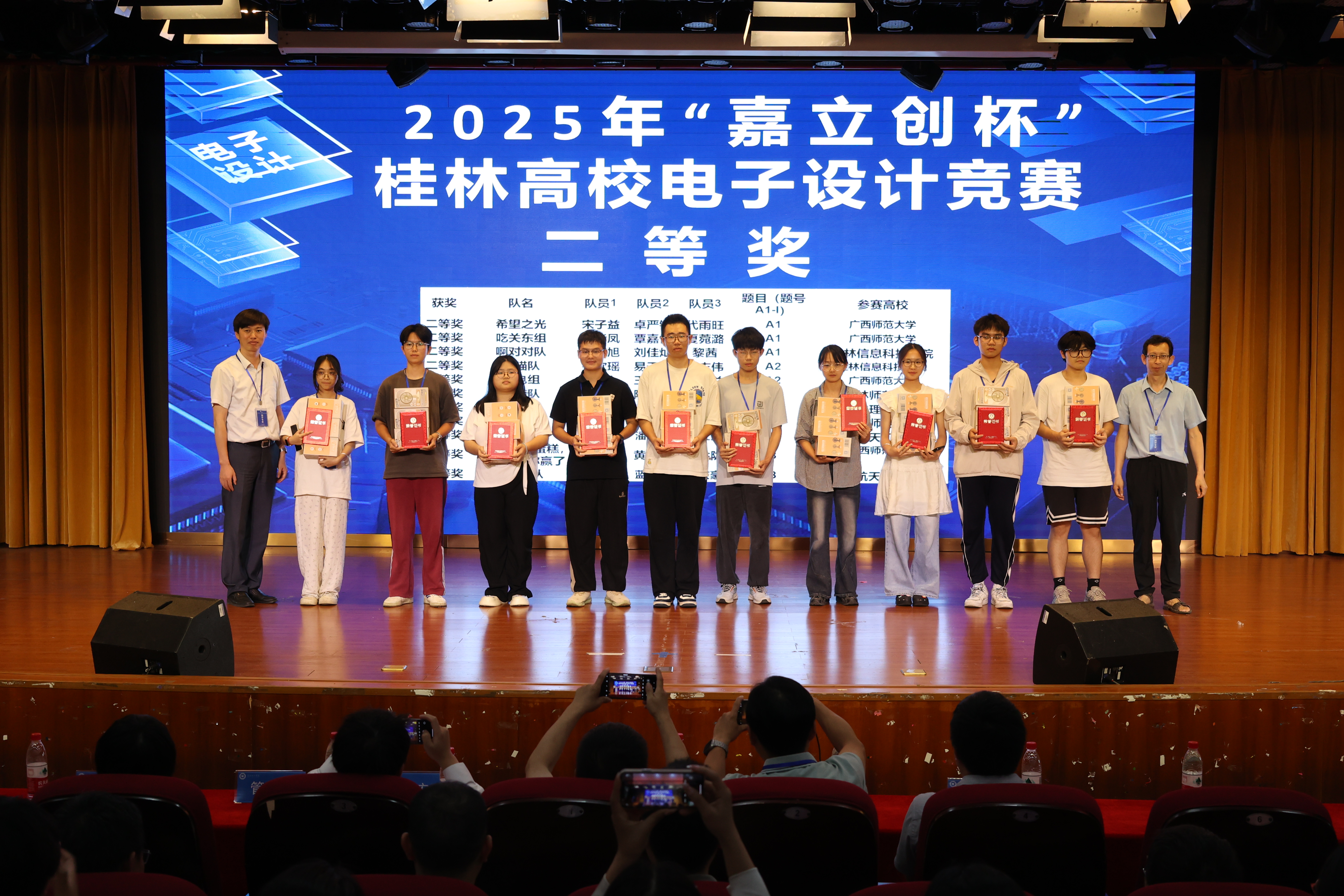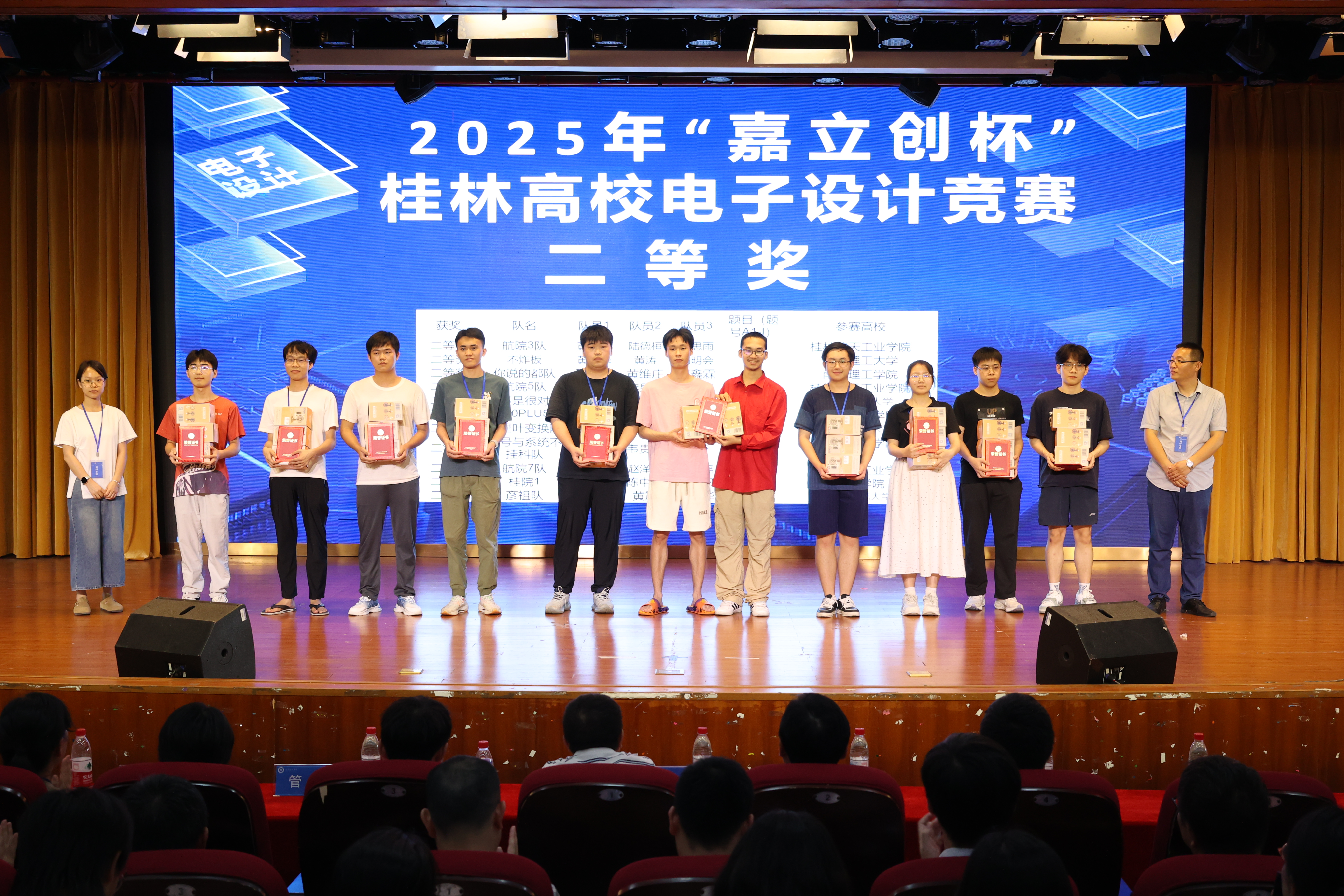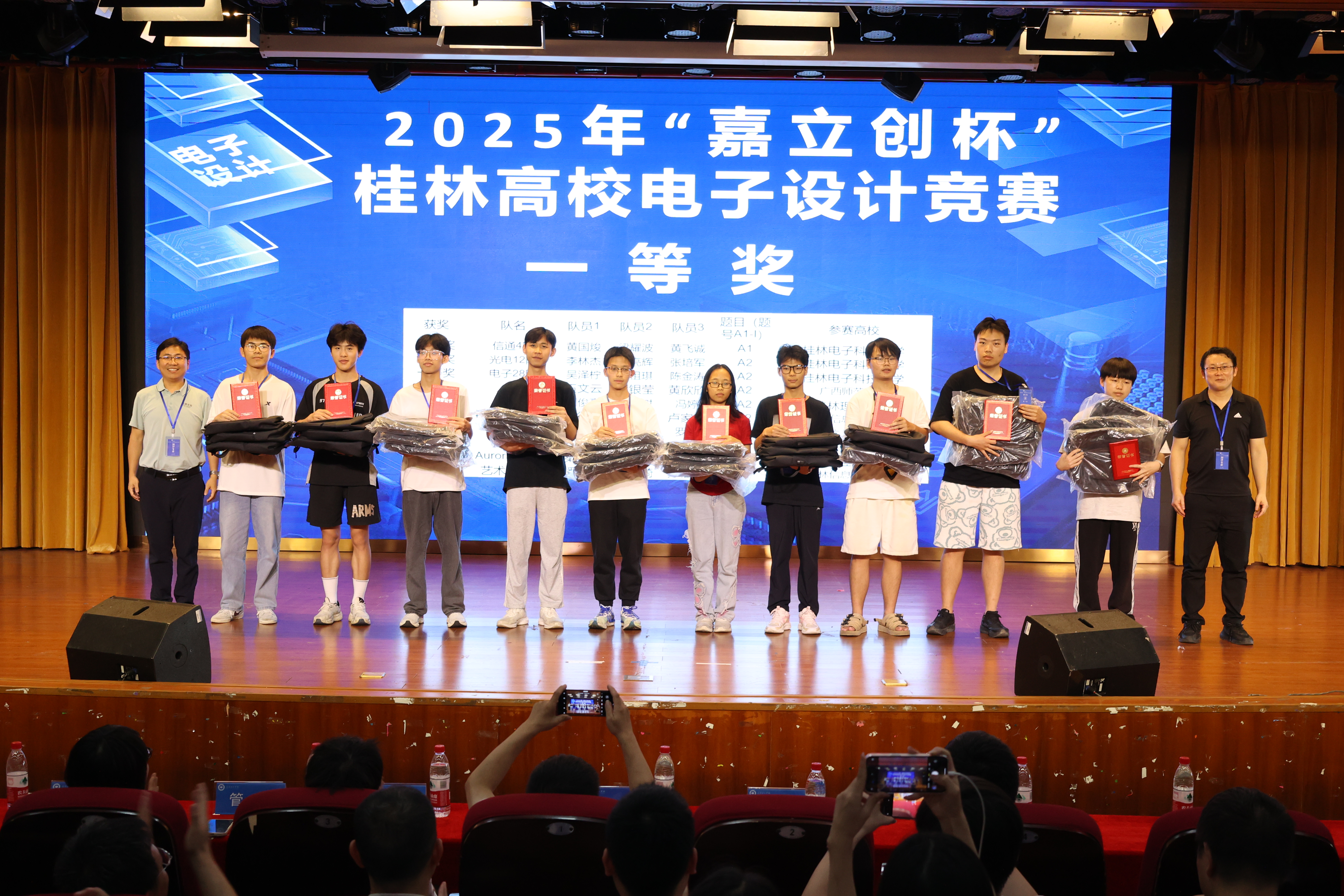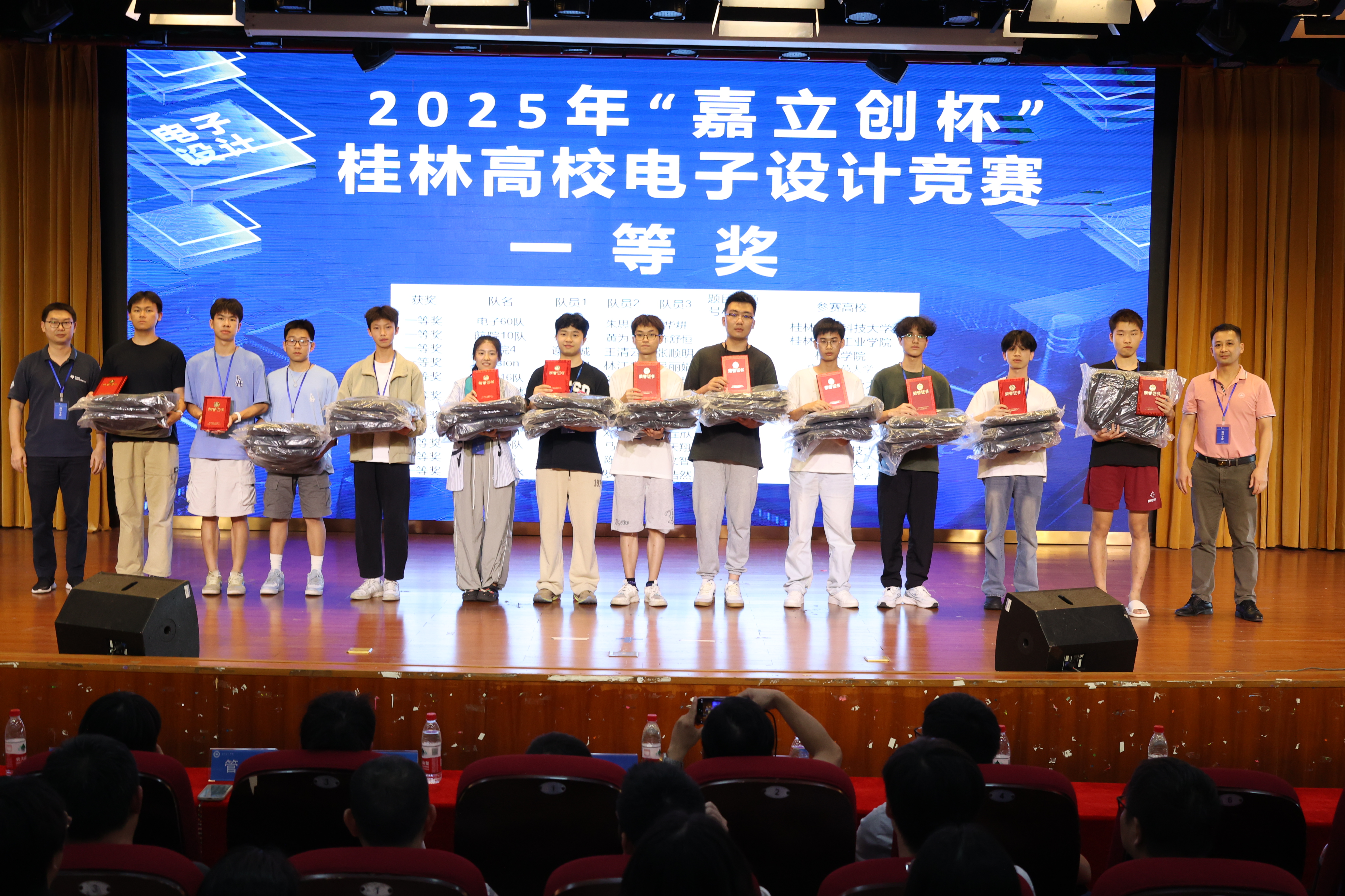 本次电子设计竞赛采用2025年广西大学生电子设计竞赛第一阶段的9个题目,涉及智能控制、信号处理、传感器应用等多个领域。在比赛过程中,各参赛队伍充分发挥团队协作精神,分工明确,配合默契,充分展示了扎实的专业知识、出色的实践能力和丰富的创新思维。经过激烈的角逐,大赛评审委员会最终评出“嘉立创”奖2个团队,一等奖31个团队,二等奖43个团队。
