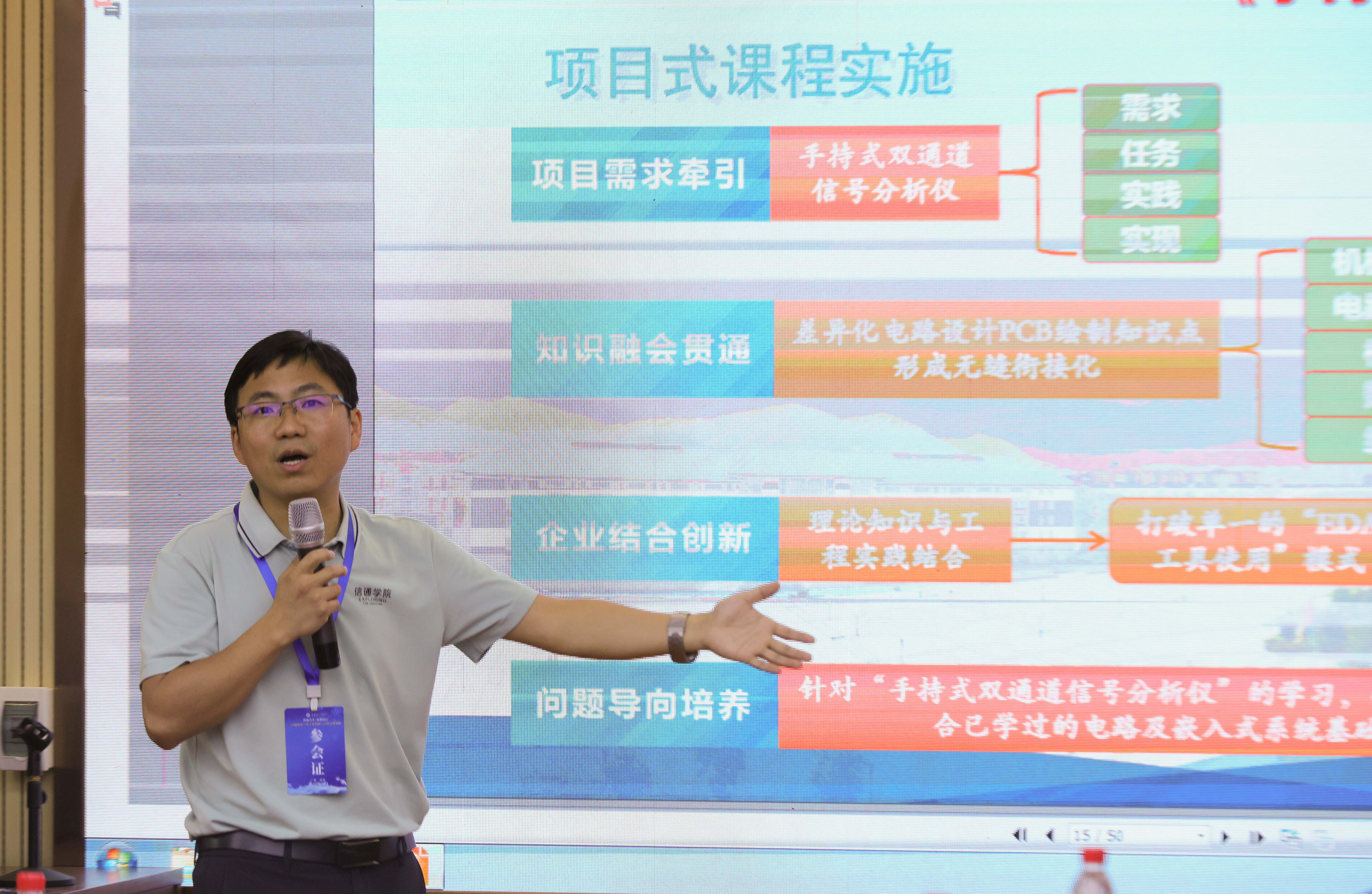 在主题报告环节,六位专家学者围绕人工智能与电气工程教育的融合创新,分别从课程建设、技术研发、人才培养等维度进行了深入探讨。张烈平教授以国家级一流课程建设经验为基础,系统阐述了《数字电子技术》课程线上线下混合式教学模式创新。石荣亮博士则聚焦新型电力系统关键技术,详细解析了构网型虚拟同步机的功频响应特性及其优化路径。在人才培养模式创新方面,何少佳教授分享了如何培育具备跨学科视野、掌握智能技术、能解决复杂工程问题能力的未来工程师的新方案。张海燕教授提出“双域耦合、四课联动”的育人机制,通过数字智能技术赋能,构建了创新型电力人才培养的新范式。刘涛教授则通过丰富的教学案例,展示了人工智能技术在学科竞赛、科技创新与教学实践中的深度融合应用。企业专家代表冯宝祥总监从产业需求出发,深刻阐述了人工智能与电气工程专业双向赋能的实现路径。六位专家的报告为与会成员表呈现了一场精彩纷呈的学术盛宴,引发了与会者的热烈讨论和深入思考。