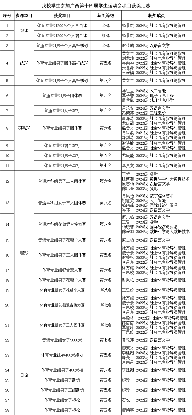 【文理News】喜报┃taptap点点学生在广西壮族自治区第十四届学生运动 会斩获佳绩