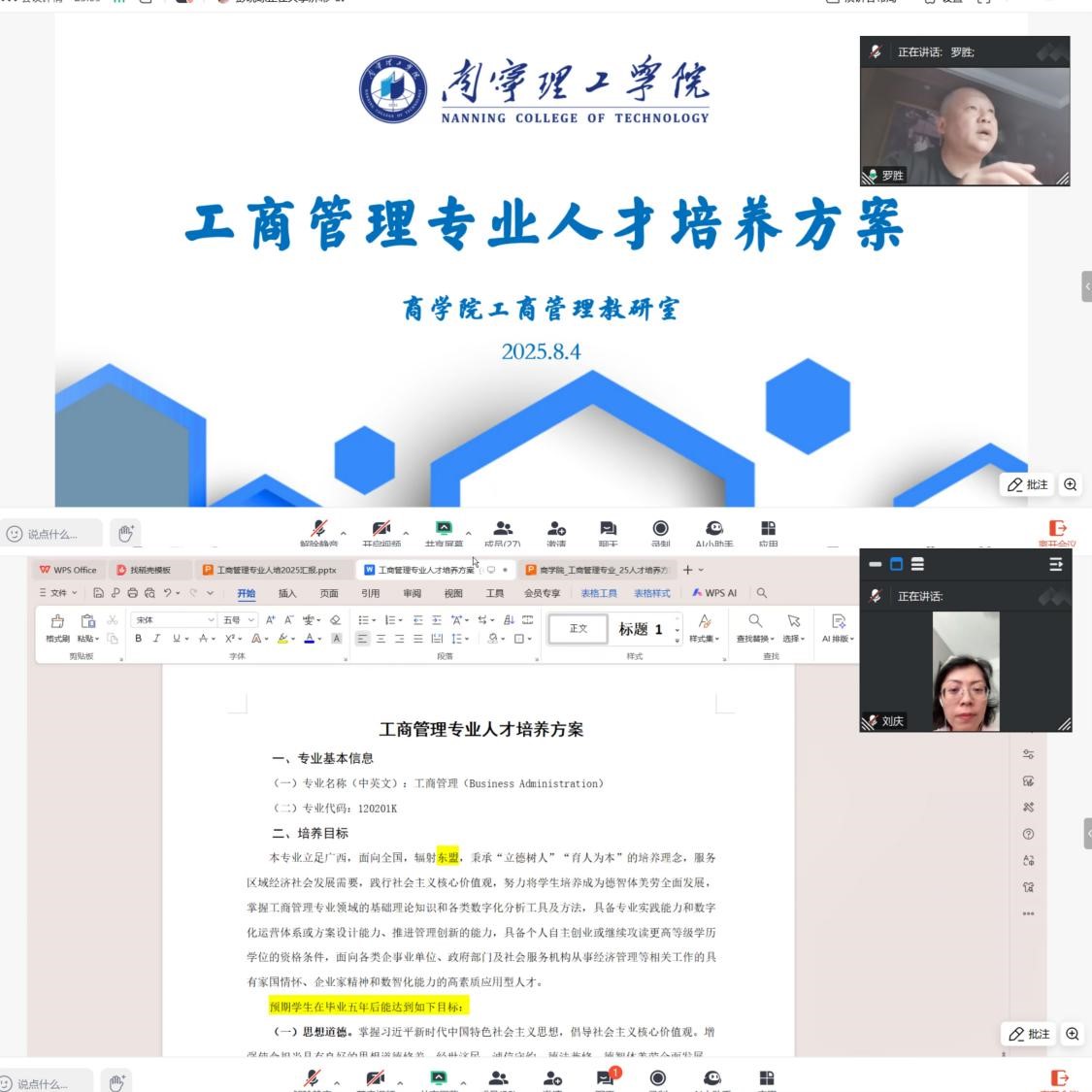 2025年8月4日,聚焦电子商务、工商管理和国际贸易三个专业人才培养方案的研讨会暨审定会顺利召开。本次研讨会汇聚了三个教研室的教师、商学院院长和副院长以及校外专家5人,共同为专业人才培养方案的优化与完善出谋划策。