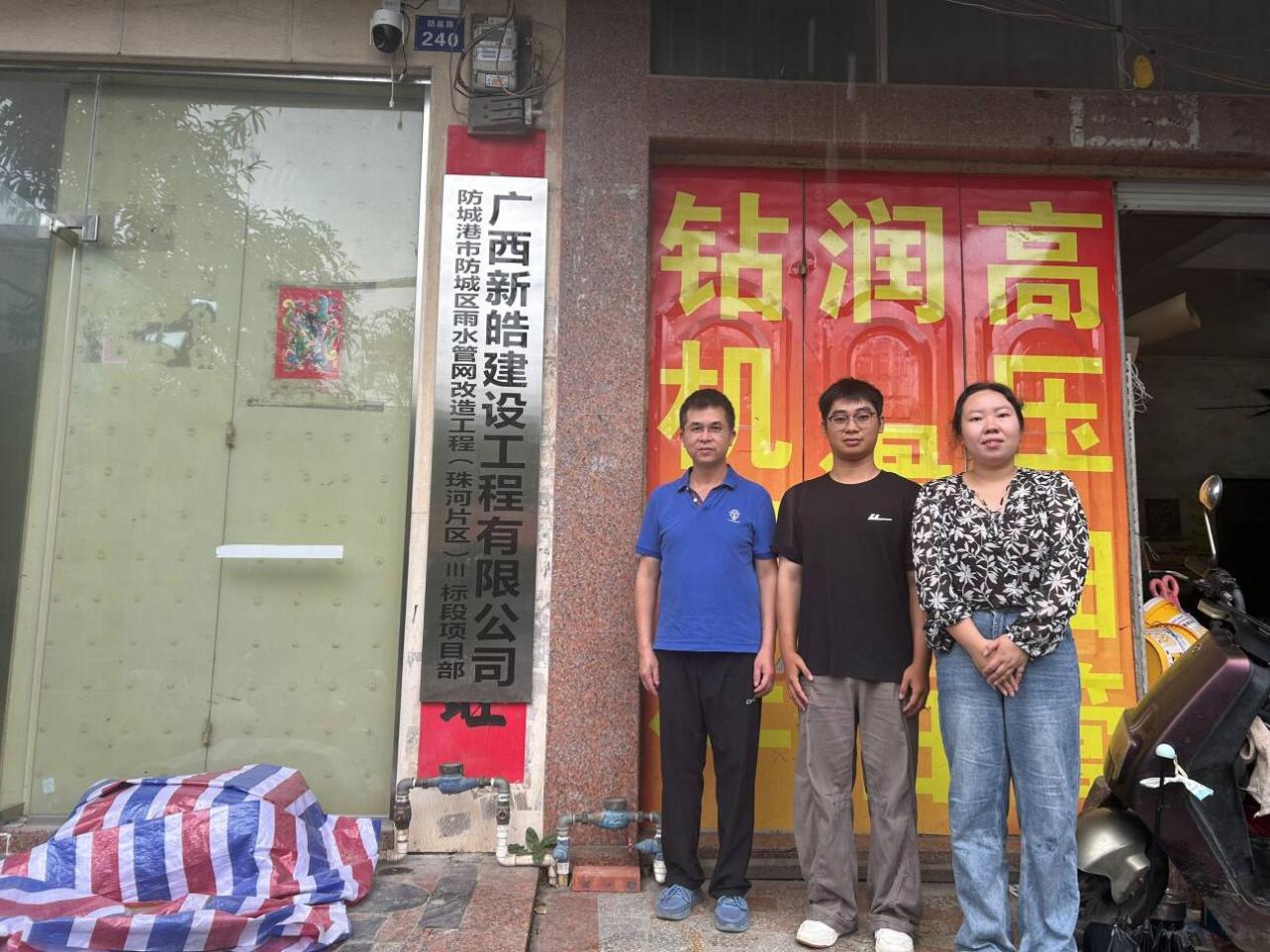 龙锐老师和雷静老师在广西新皓建设工程有限公司防城港城区雨水管网改造工程项目部