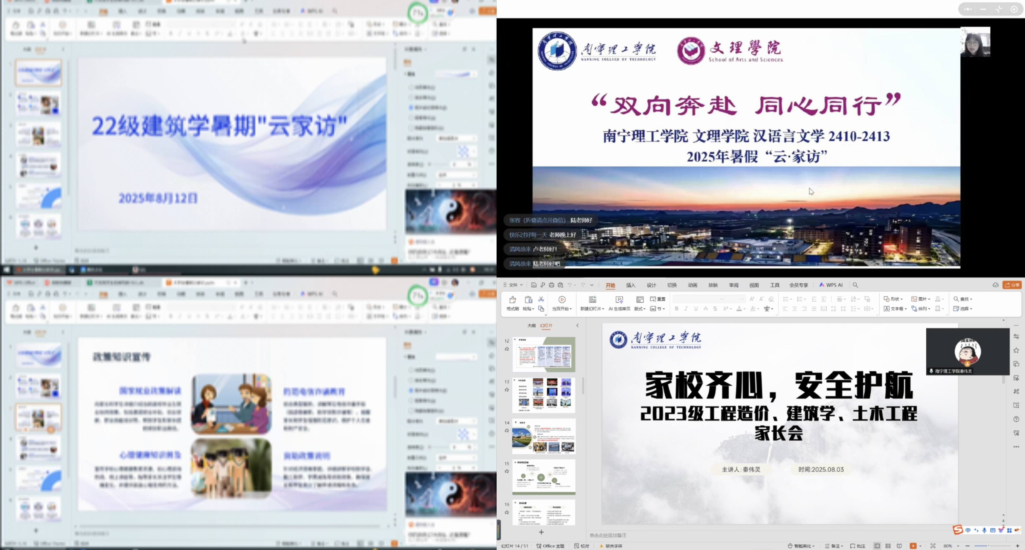 本次“云·家访”坚持高位推动、系统谋划,各二级学院辅导员以高度的政治责任感和强烈的时代使命感,依托微信视频、腾讯会议、钉钉等多元数字平台,围绕思想引领、心理护航、学业导航、职业规划、安全教育、反诈防骗等主题,开展“键对键”“屏对屏”的深度对话。活动突出精准滴灌、分类施策,既有云端家长会的大格局,也有点对点私聊的小温暖;既有方向性的宏观指导,也有个性化的微观关怀,充分体现了“以生为本”的工作理念和“时时放心不下”的责任担当。