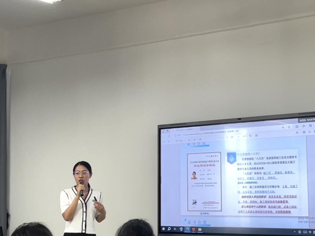 工坊聚焦于学生未来发展的关键路径,内容涵盖了四大核心板块。首先,关于辅修专业的项目介绍,深入解读了跨学科学习的优势与申请流程,为辅导员指导学生构建复合型知识结构、提升就业竞争力提供了清晰的方向。其次,无人机技能培训项目,宣讲老师详细介绍了无人机技术在土木工程勘察、测绘、监测等领域的广泛应用及巨大市场潜力,以及相关的驾照考取与技能认证体系。另外,第三板块则是建筑行业“七大员”培训,专家就施工员、质量员、资料员等关键岗位的证书考取政策、培训内容及重要性进行了系统梳理。最后,在对职业资格证书培训项目的宣讲中,内容涵盖了心理咨询师、网络工程师、健康管理师等证书的考取,帮助辅导员系统了解了行业顶尖人才所需的资质与能力要求,从而能为学生制定长远的职业发展蓝图提供科学建议。