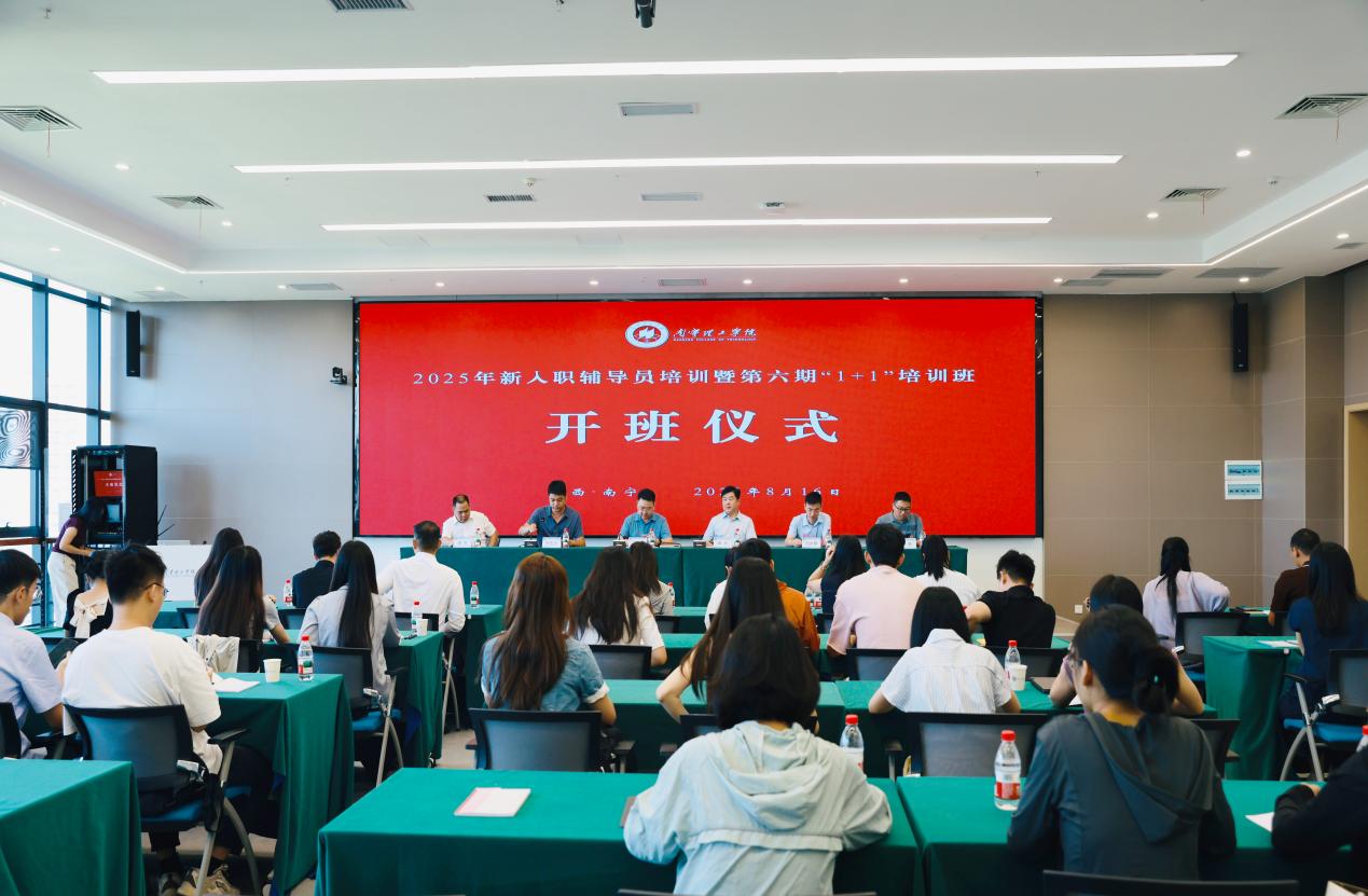 8月16日上午,学校2025年新入职辅导员培训暨第六期“1+1”辅导员培训班开班仪式在南宁校区图书馆618会议室隆重举行。学校副董事长冯正垚,党委副书记、副校长韩乔,各二级学院党总支书记及相关职能部门负责人出席仪式。仪式由学生工作处副处长孙宝会主持。