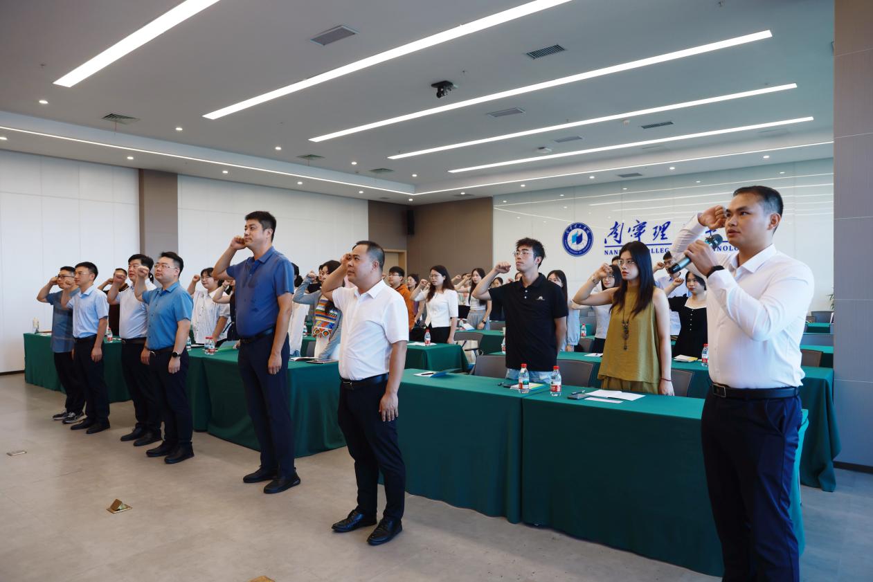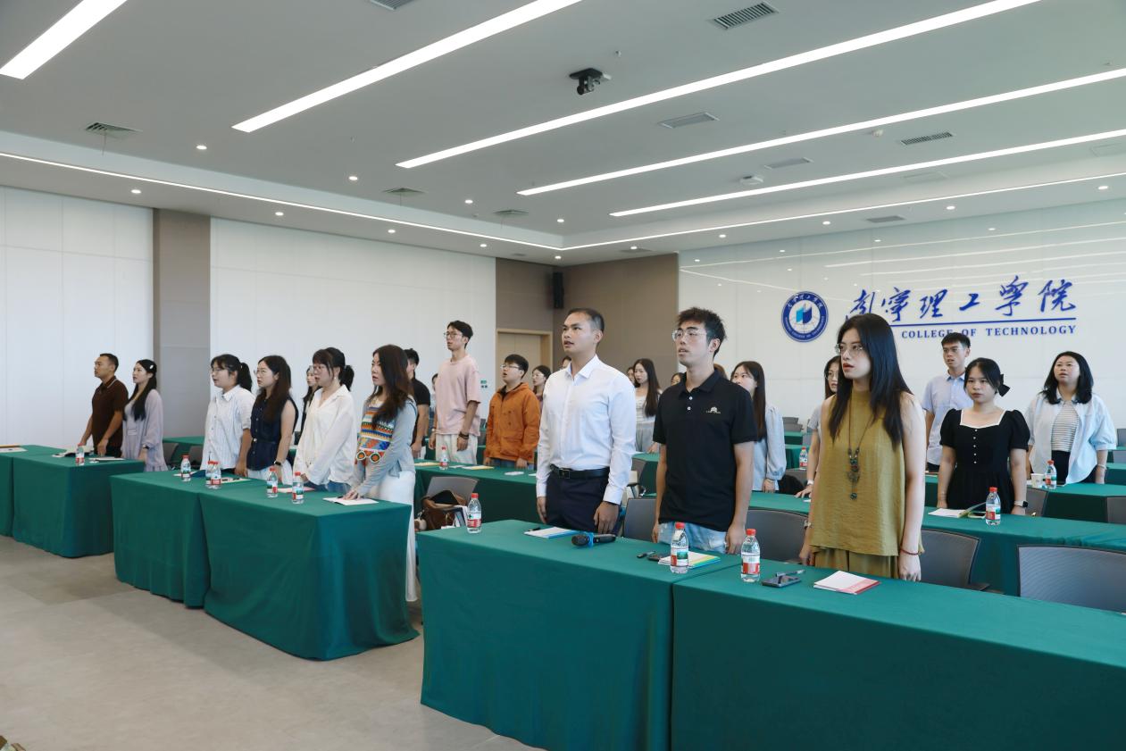 在辅导员代表梁彬领誓下,全体参训辅导员高举右拳,重温高校辅导员誓词,铿锵誓言响彻会场。仪式最后,全体与会人员齐声高唱《高校辅导员之歌》。