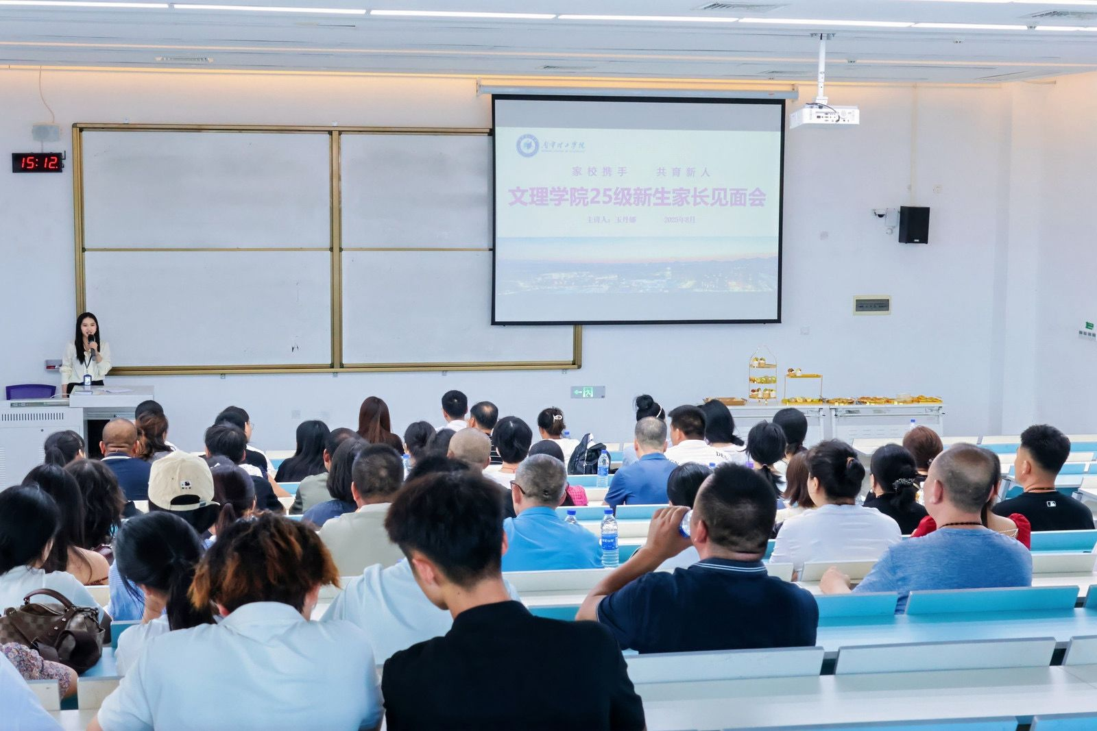 为帮助新生家长深入洞悉学校育人理念与管理模式,进一步筑牢家校沟通纽带。23-25日下午,文理学院顺利召开 2025 级新生家长会。党总支书记刘武钢、学院副院长庄杏湖以及部分 2025 级新生与新生家长共同参与本次会议,会议由学院辅导员玉丹娜主持。