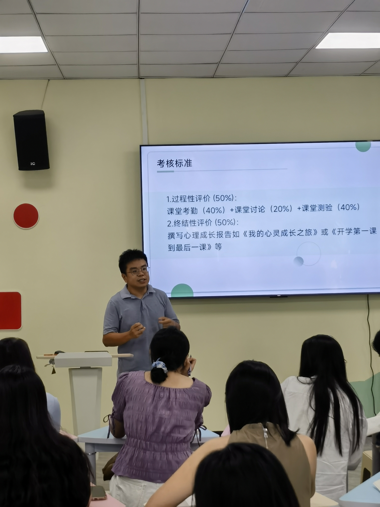宁世杰老师就课程设置与授课重难点进行了简要介绍,并以说课形式分享了教学实践;罗雪老师针对心理危机突发事件的处置流程及应对策略作了具体讲解,助力应对实际教学中可能遇到的挑战;梁成龙老师则通过答疑环节,与在场教师共同探讨如何提升心理健康教育课程的授课质量。